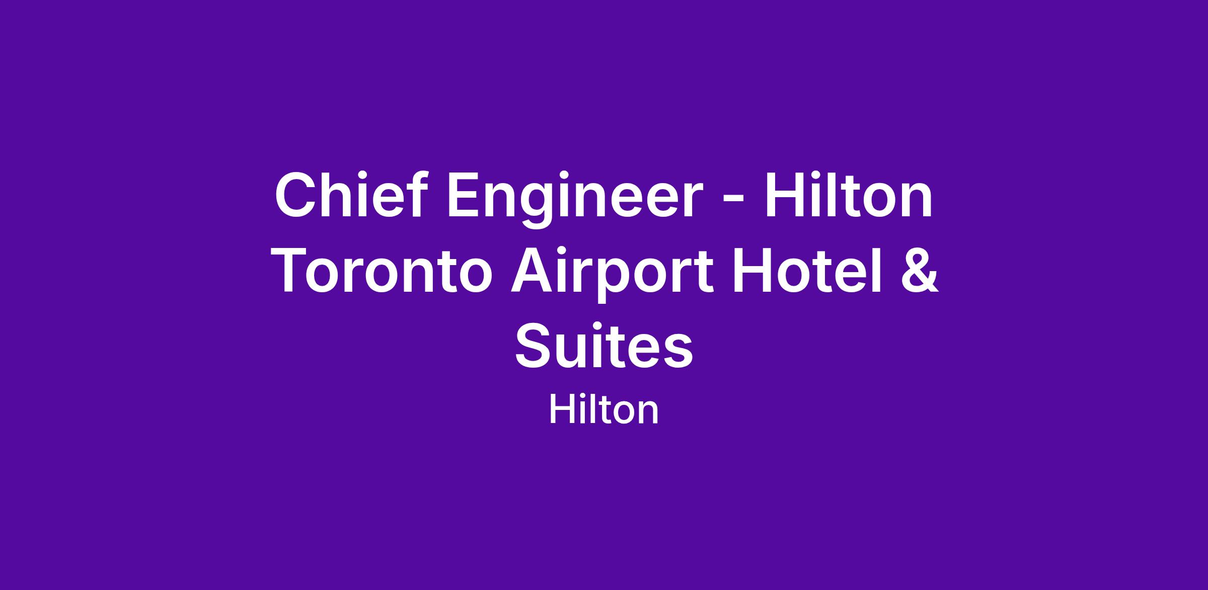 Due to a recent internal promotion, the Hilton Toronto Airport Hotel & Suites —a full-service, high-volume hotel in a fast-paced airport market—is seeking an accomplished Chief Engineer to lead all engineering and facilities operations.