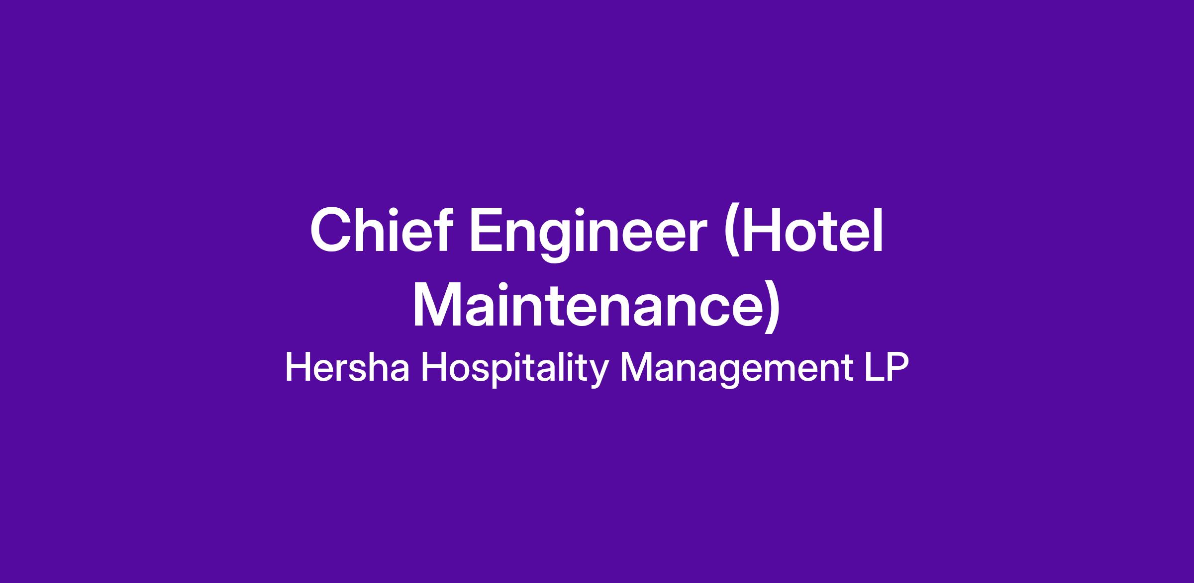 Chief Engineer (Hotel Maintenance)