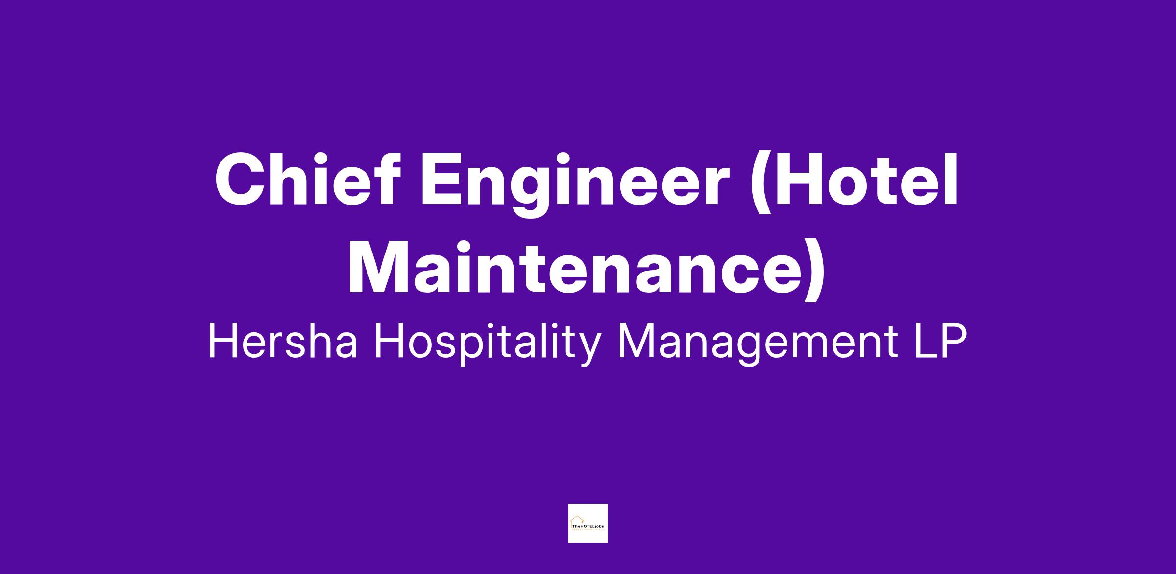 Chief Engineer (Hotel Maintenance)