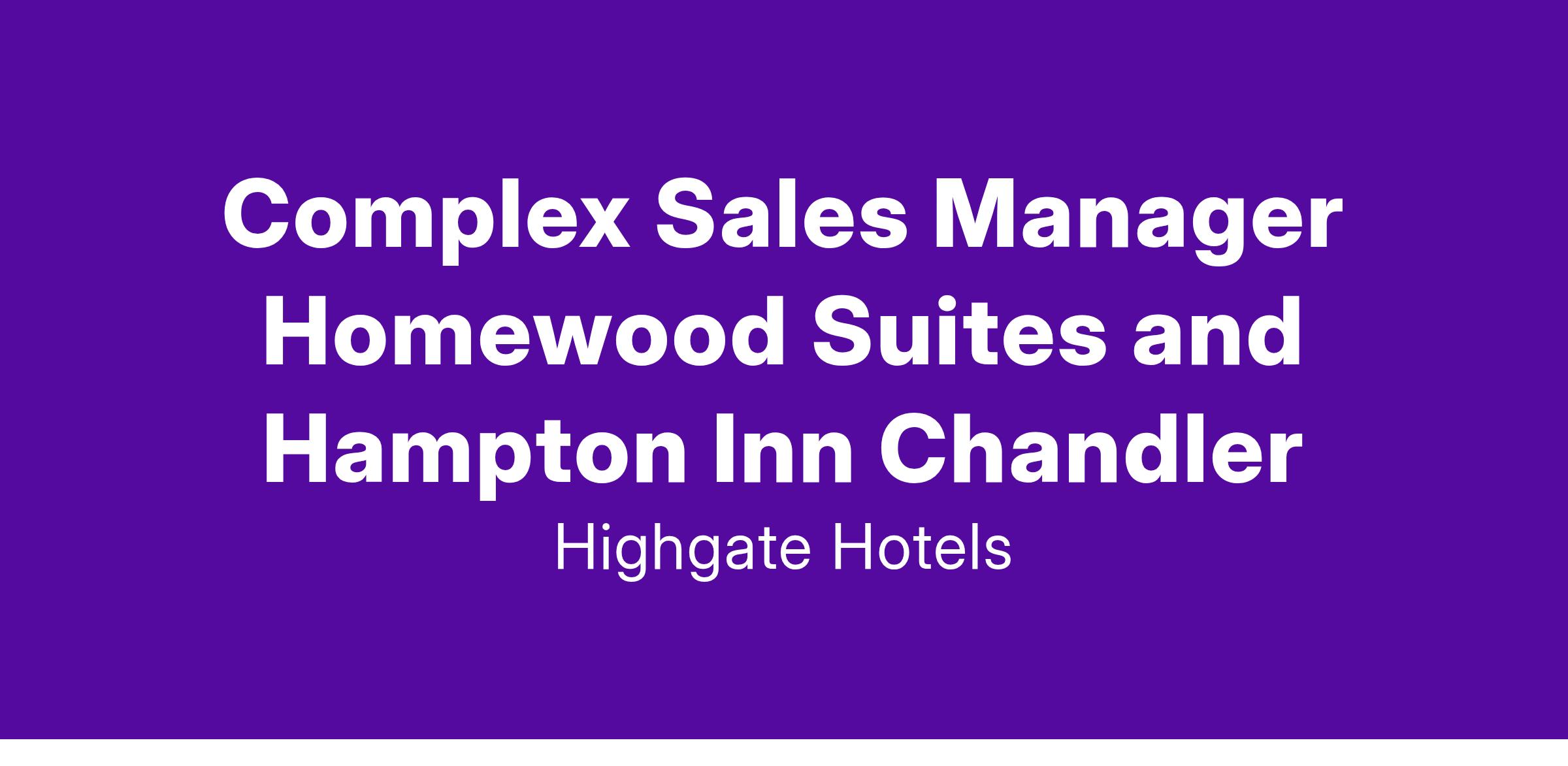 The Complex Sales Manager is responsible for effectively soliciting and becoming familiar with all accounts in his/her market segments. He/she is also responsible for prospecting and closing on assigned accounts/territory to positively impact hotel revenues.