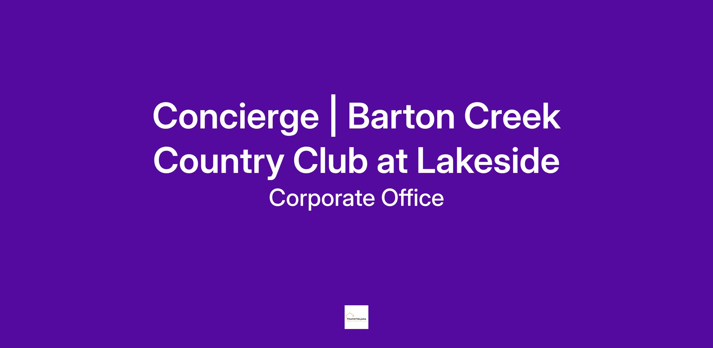 Omni Hotels & Resorts is seeking Concierege | Barton Creek Country Club at Lakeside for the beautiful Barton Creek Country Club!