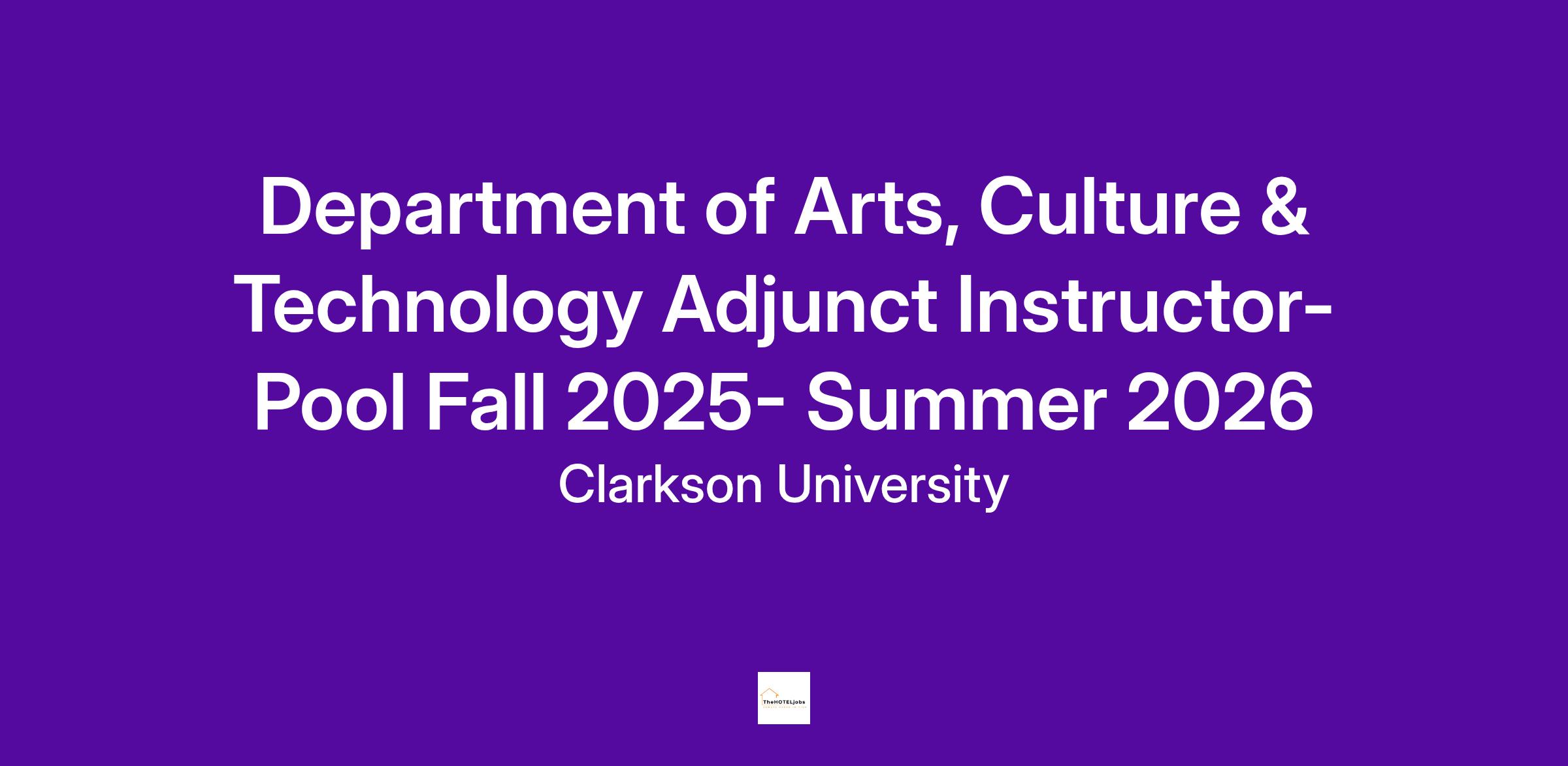The Department of Arts, Culture & Technology at Clarkson University seeks adjunct instructors.