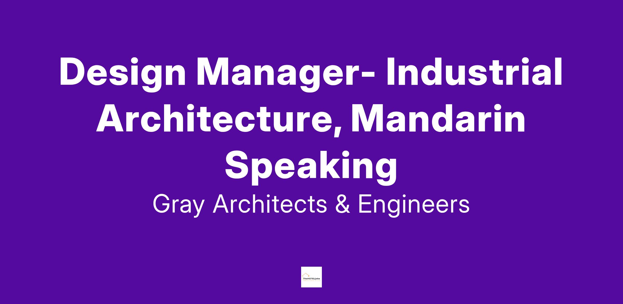 Gray AES is looking for an Design Manager,-Industrial Architecture to join our team in our Fullerton, CA Office or Remotely. *Must be Mandarin Speaking.