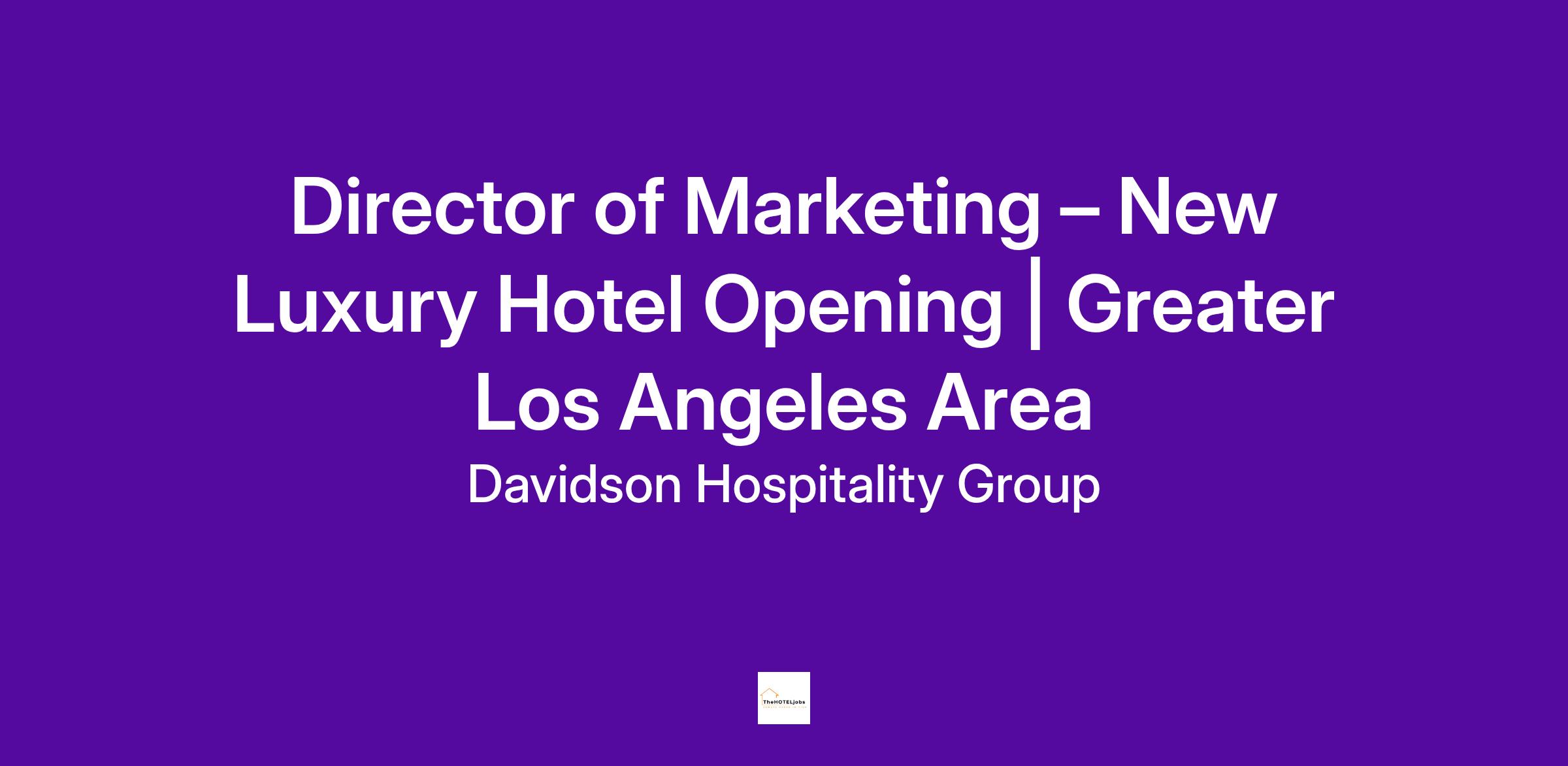 Director of Marketing – New Luxury Hotel Opening | Greater Los Angeles Area
