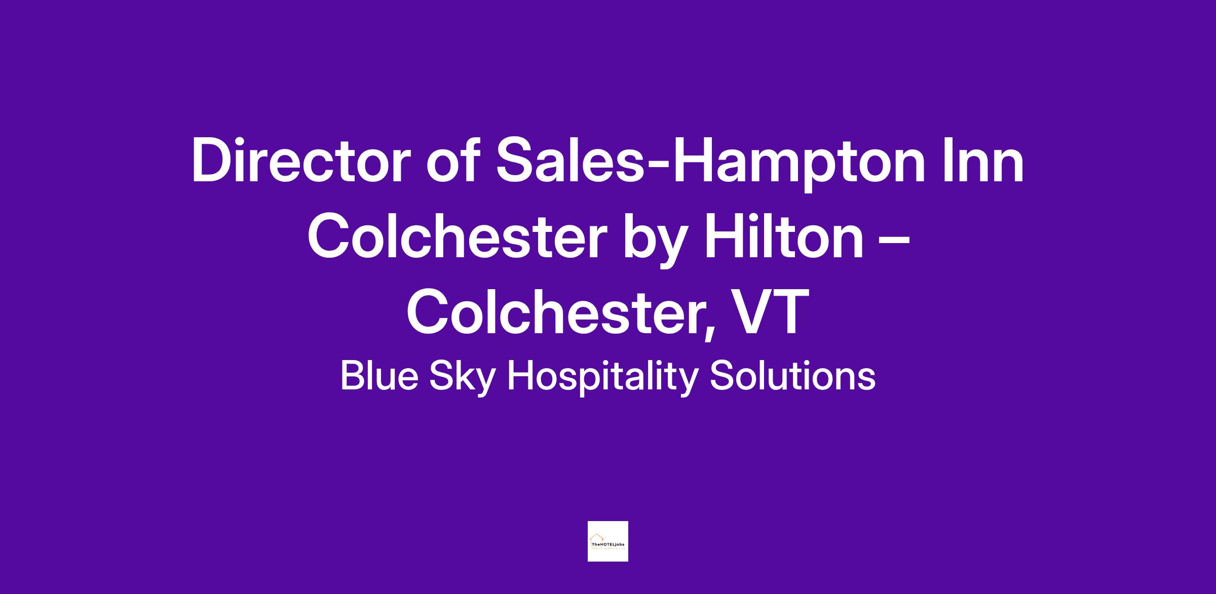 The Hampton Inn Colchester by Hilton is dedicated to providing exceptional hospitality and memorable guest experiences. We are seeking a dynamic and driven Director of Sales to lead our sales efforts, maximize revenue opportunities, and build strong relationships with corporate, group, and leisure clients.
