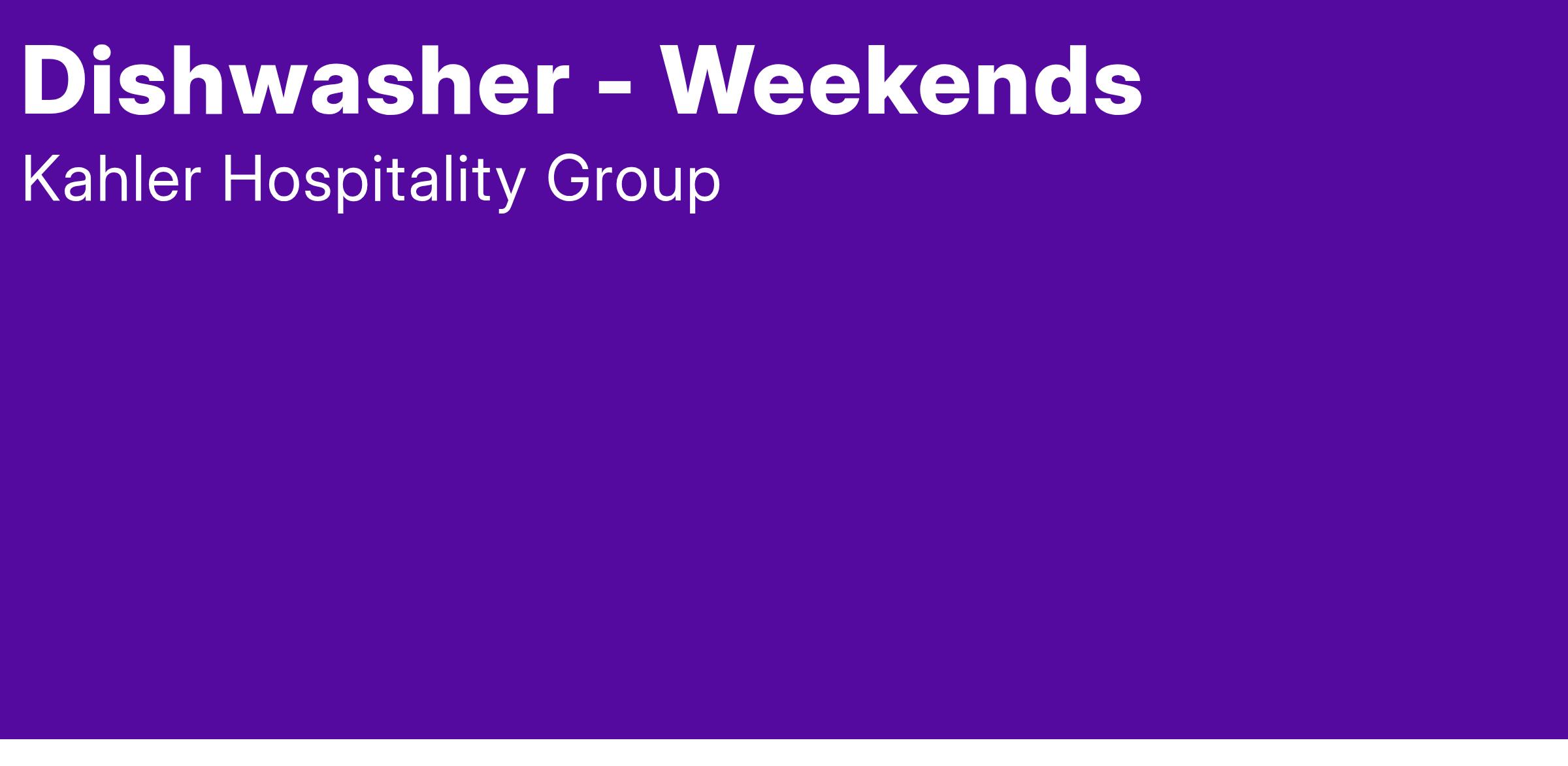 Currently hiring a part time dishwasher at CB3 at Kahler Inn & Suites. Shifts are Saturday and Sunday evenings.