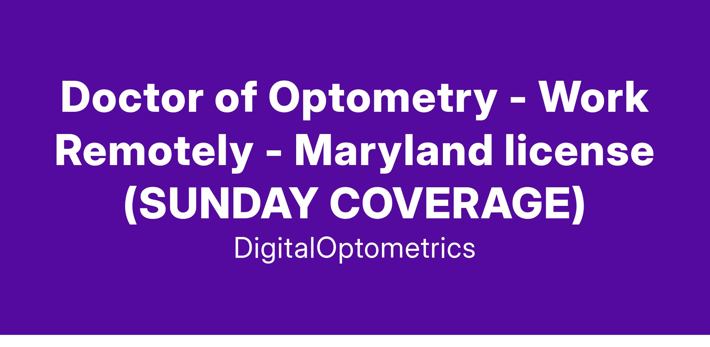 Doctor of Optometry - Work Remotely - Maryland license (SUNDAY COVERAGE)
