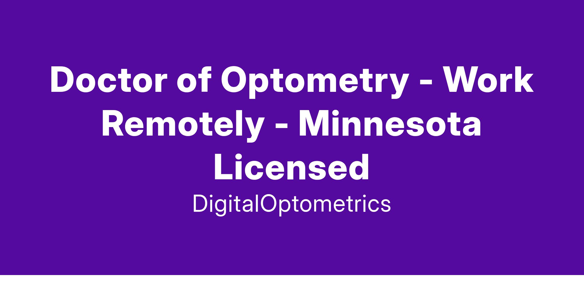 Doctor of Optometry - Work Remotely - Minnesota Licensed