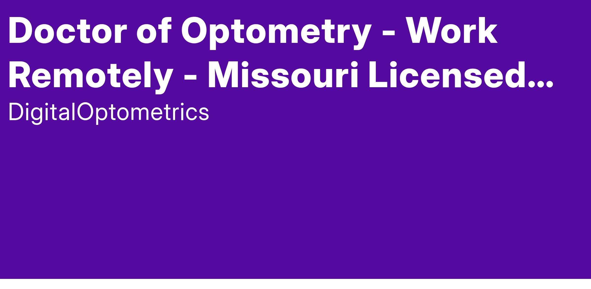 Doctor of Optometry - Work Remotely - Missouri Licensed (SUNDAY COVERAGE)