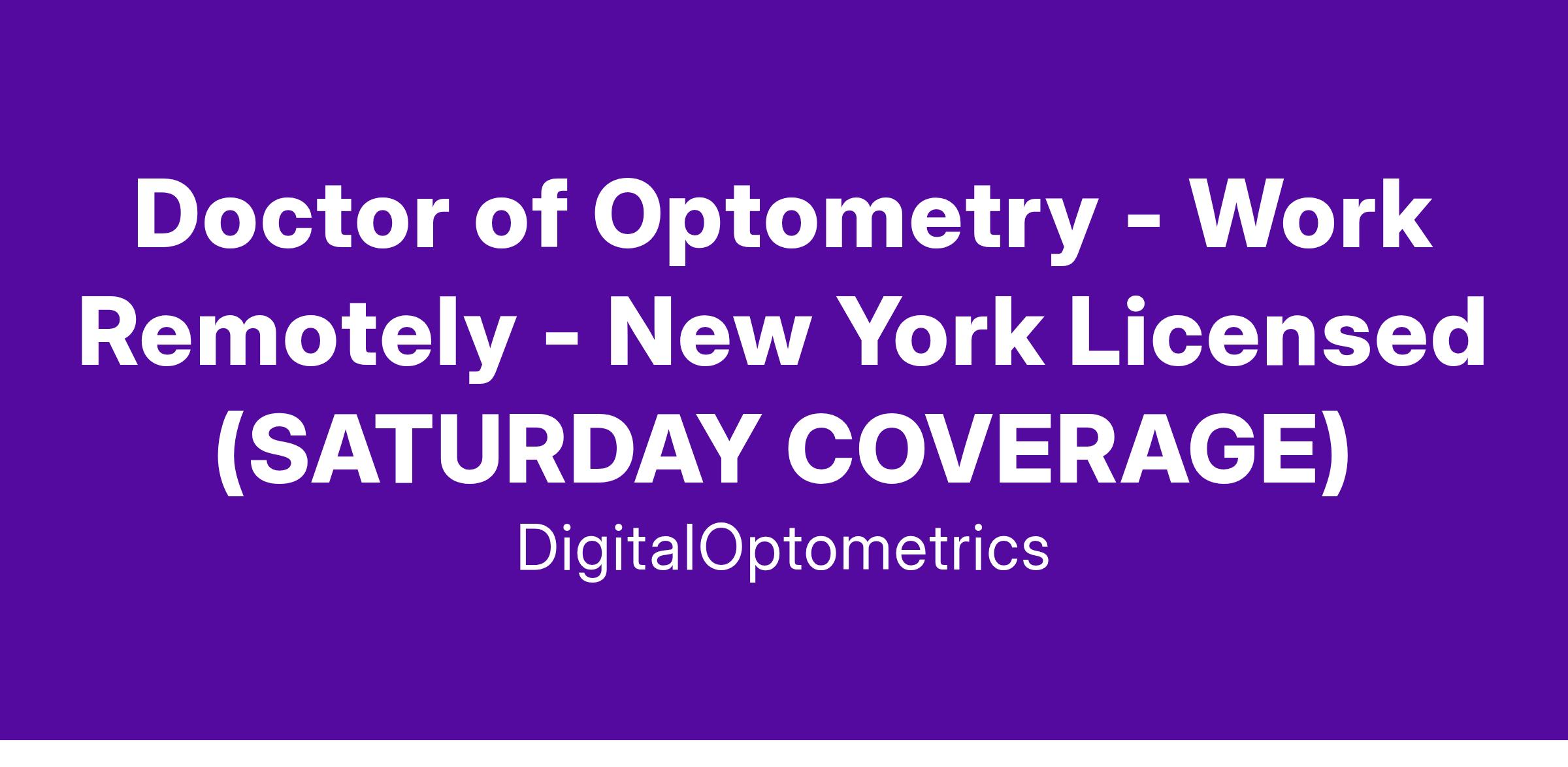 Doctor of Optometry - Work Remotely - New York Licensed (SATURDAY COVERAGE)
