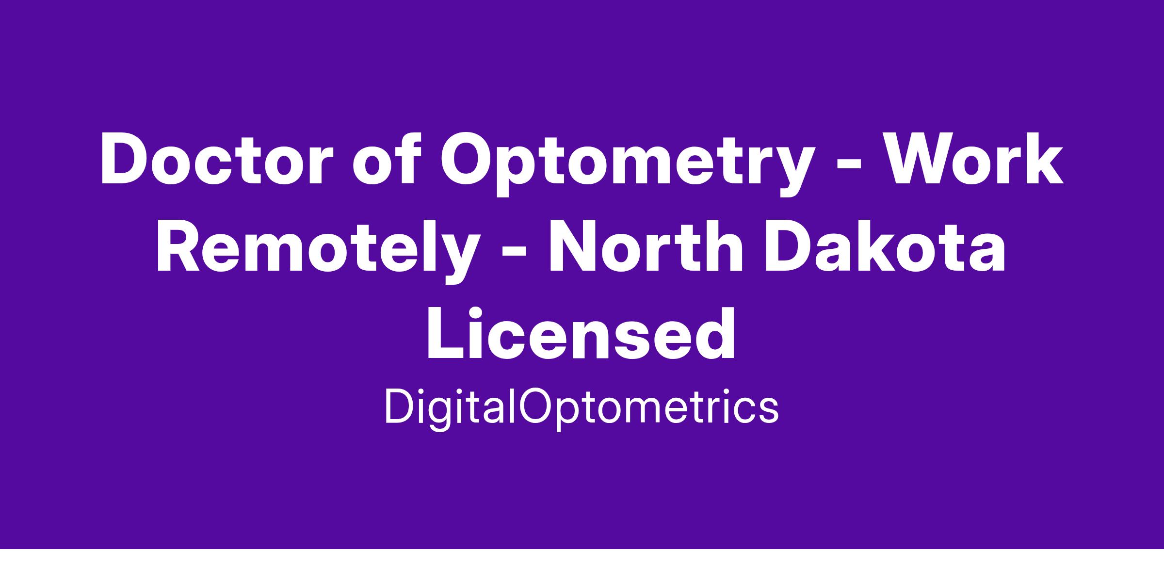 Doctor of Optometry - Work Remotely - North Dakota Licensed