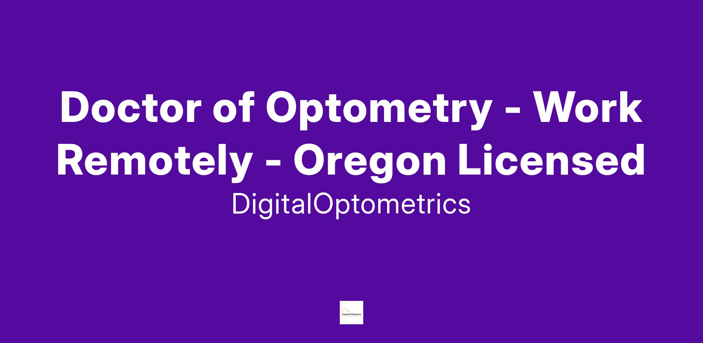 Doctor of Optometry - Work Remotely - Oregon Licensed