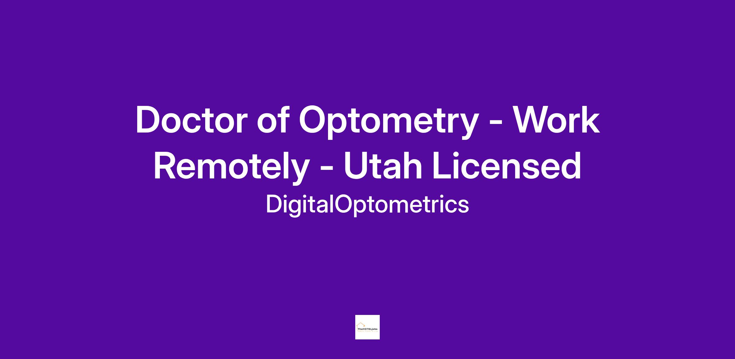 LICENSED DOCTOR OF OPTOMETRY - UTAH LICENSED