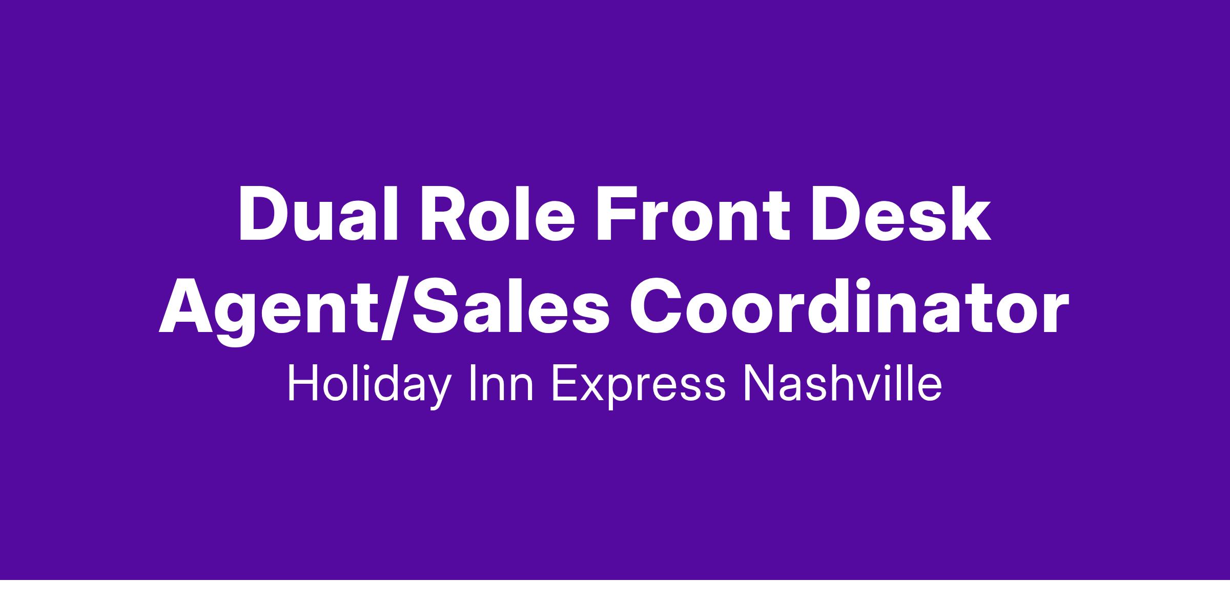 DUAL ROLE: HOTEL FDA AND SALES COORDINATOR EXPERIENCE REQUIRED; WAGE: $20/HOUR FOR FDA BOTH ROLES; FULL TIME; WEEKENDS REQUIRED