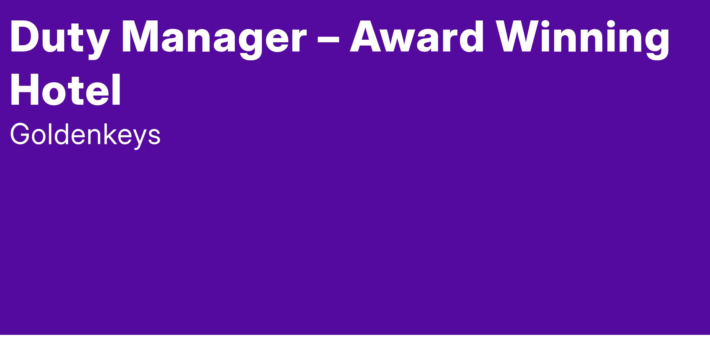 Duty Manager required to join this beautiful hotel located just outside Stroud. Supporting their experienced General Manager, you will have a passion for leading a talented team of front-of-house professionals delivering exceptional guest experiences every day. We are looking for an Duty Manager with a can-do attitude, someone with a strong F&B background and an individual with real charisma and care for guests and staff.