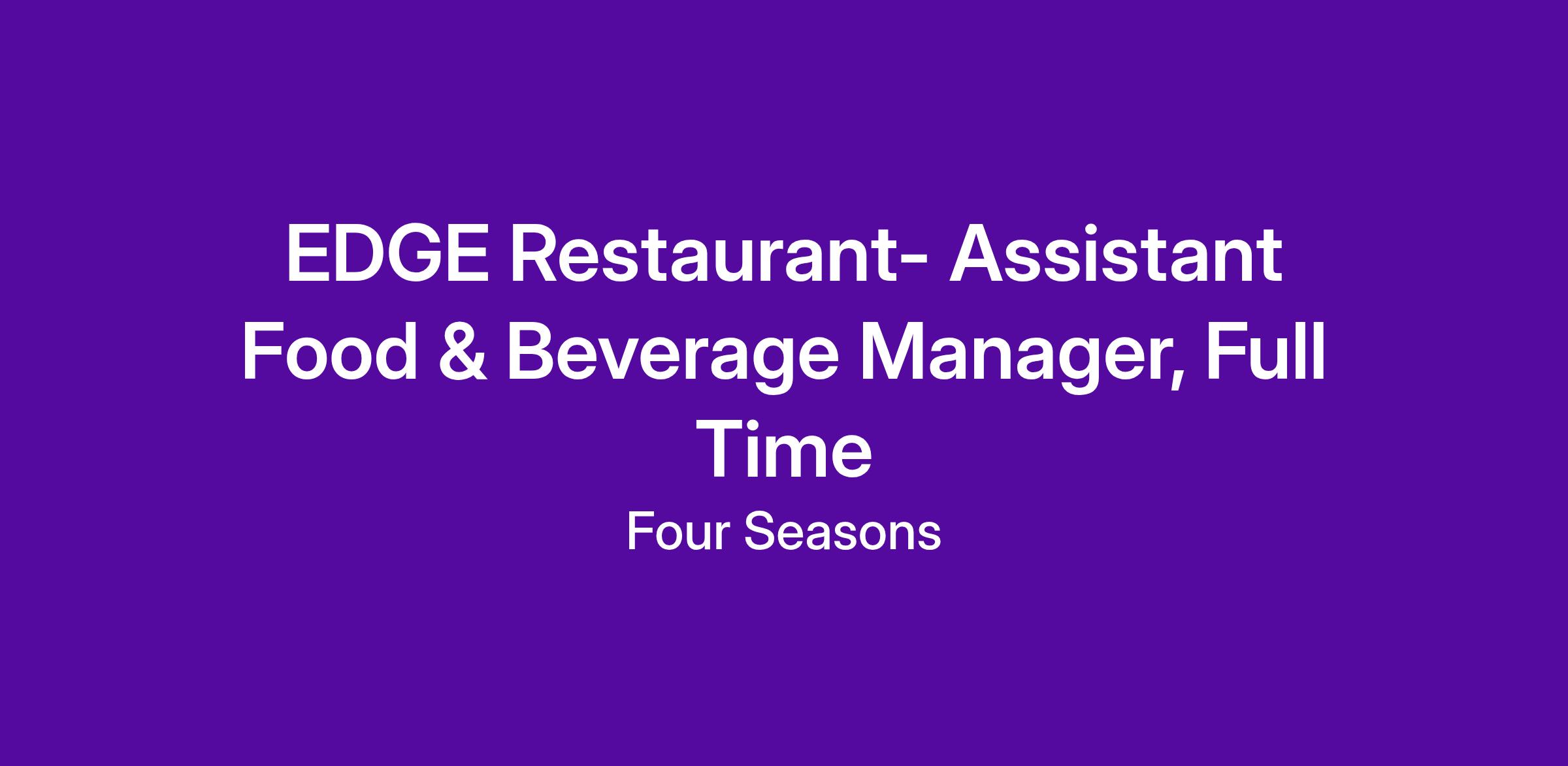 An urban retreat in the heart of the Mile High city. Plan a getaway at our elevated mountain metropolis. Explore a variety of sporting events and concerts across the Mile High City, feel the warmth of family-friendly performing arts classics or hit the slopes just a short drive away from Four Seasons Hotel Denver. Stay in for the quiet nights with 24-hour room service, savour locally sourced ingredients prepared by classically trained chefs, slip into bliss with handcrafted cocktails at EDGE Restaurant & Bar or unwind at our spa with a selection of rejuvenating treatments.Assistant Food & Beverage Manager, Full-Time