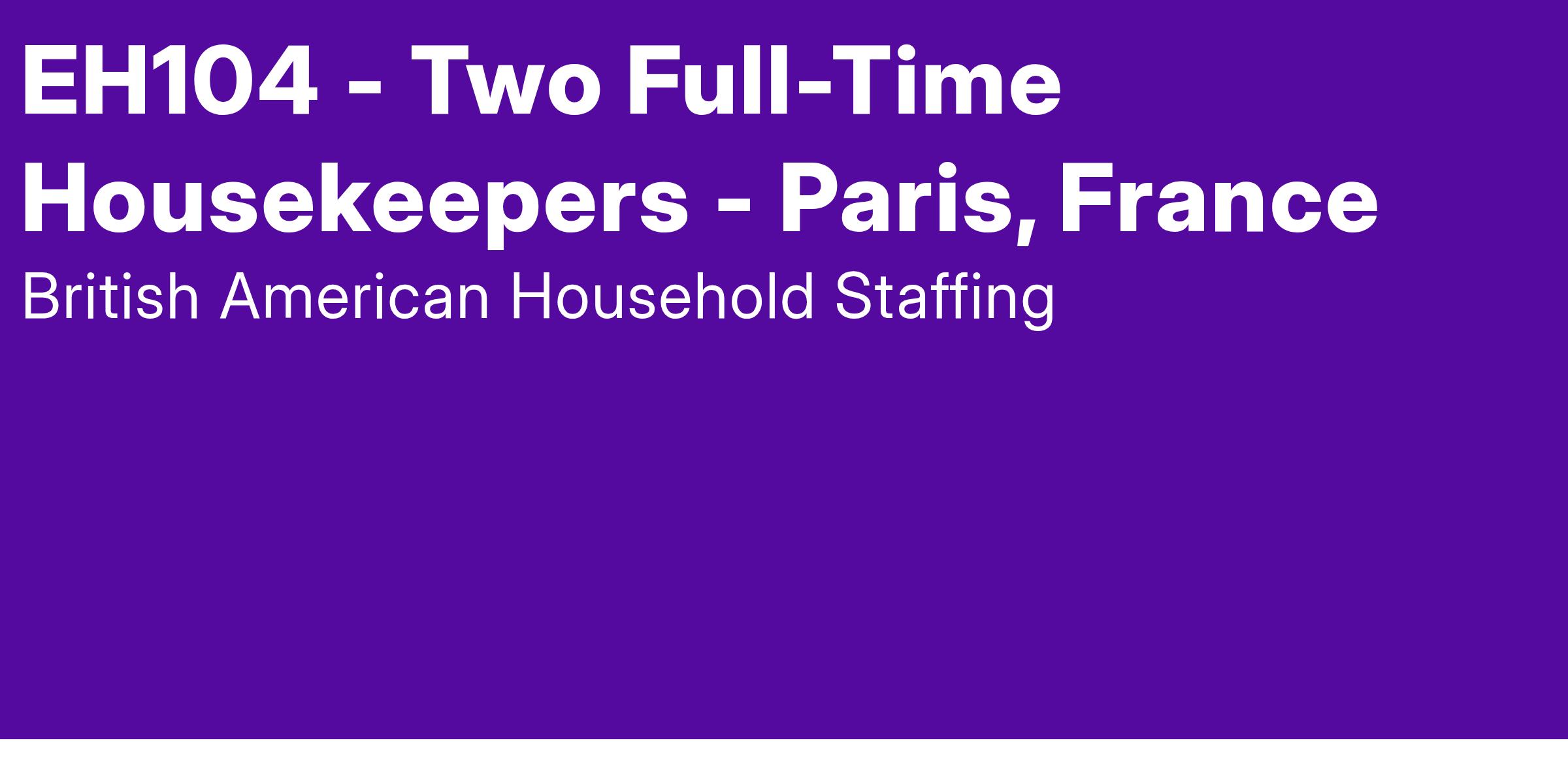 Two highly experienced, and detail-oriented housekeepers are being sought to join a team and provide exceptional service for an UHNW family in Paris. The ideal candidate will have prior experience in high-end hotels and a strong background in service, they must be fluent in English.