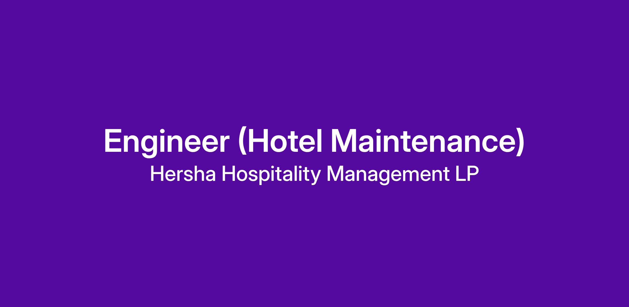 Engineer (Hotel Maintenance)
