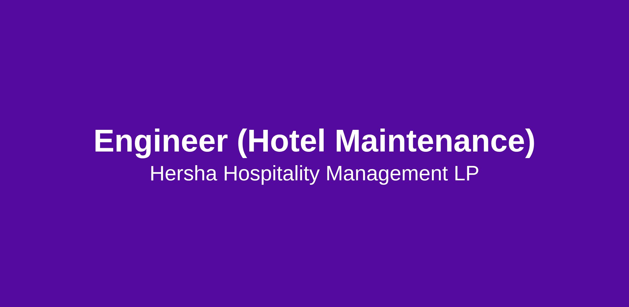 Engineer (Hotel Maintenance)