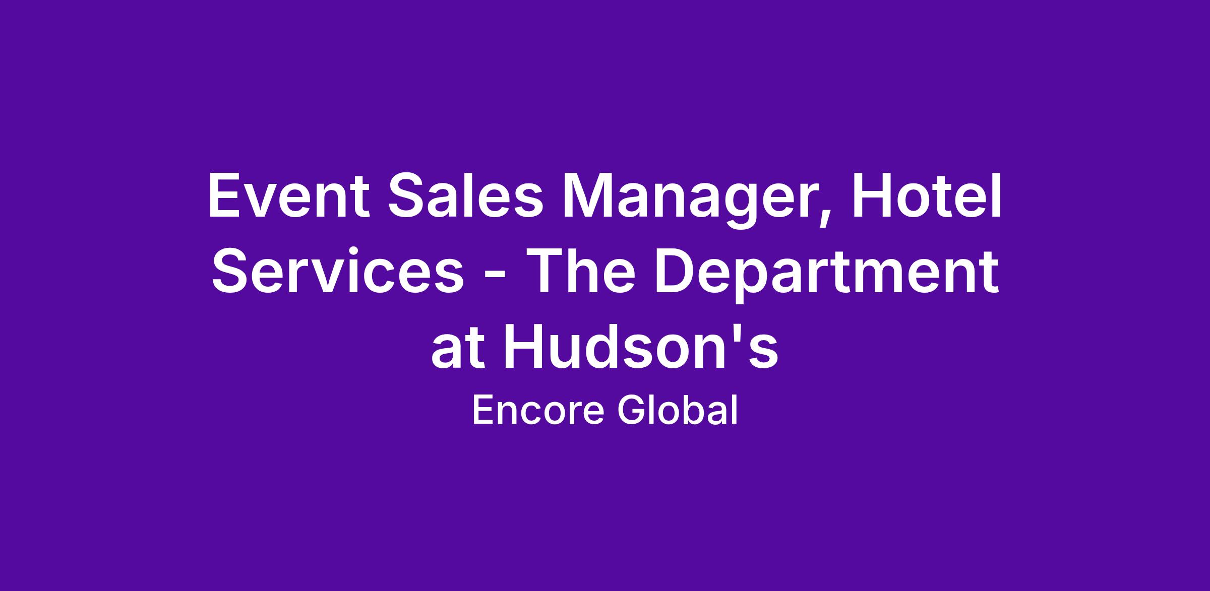 Event Sales Manager, Hotel Services - The Department at Hudson's