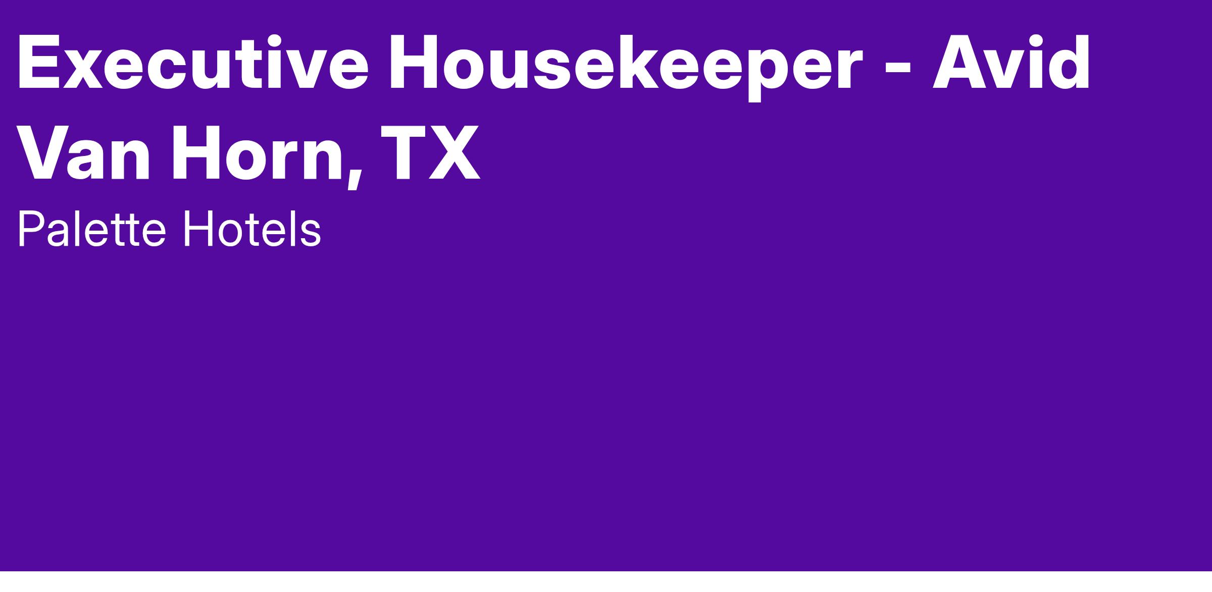 Executive Housekeeper - Avid Van Horn, TX