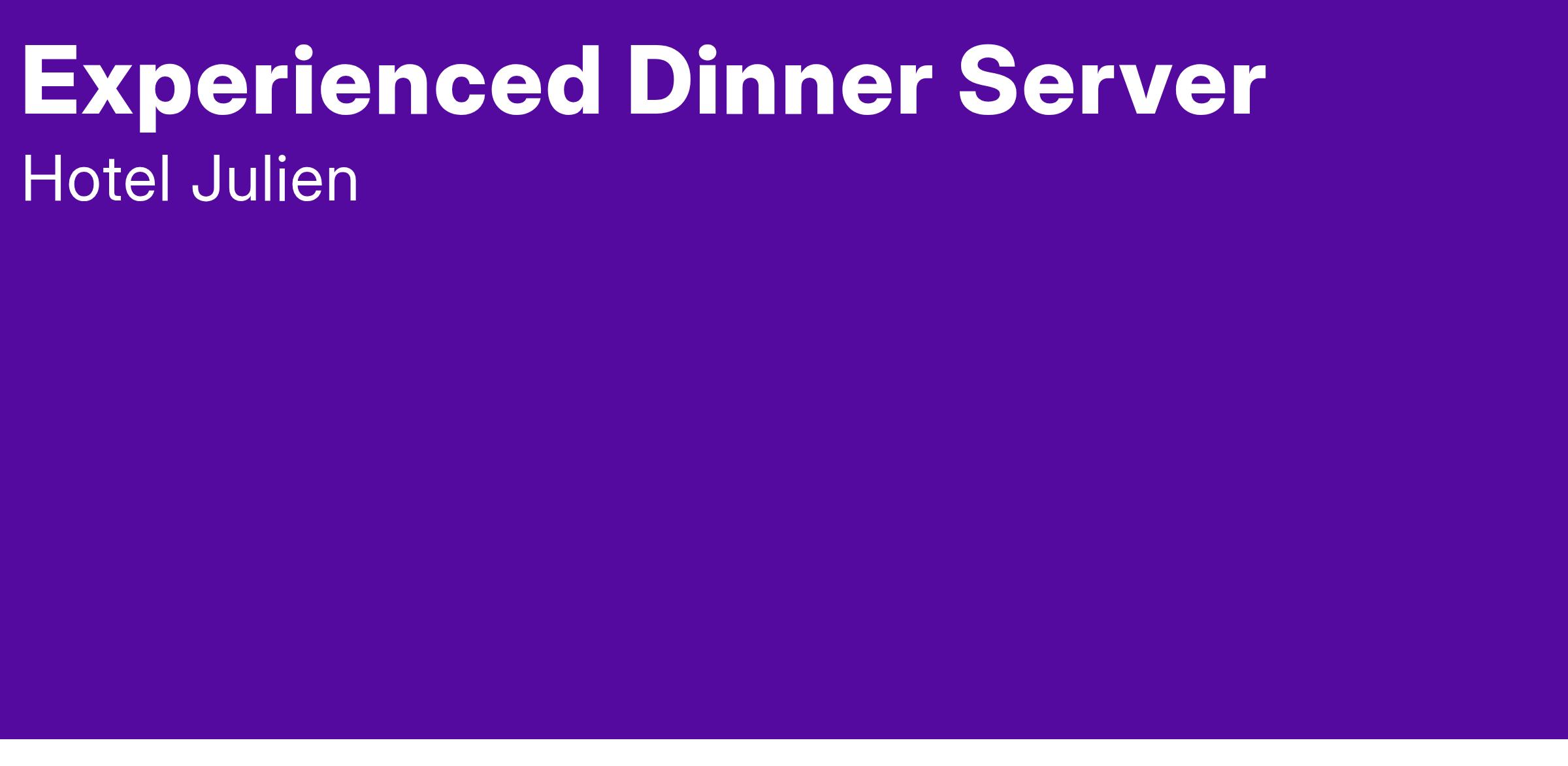 Join our team at HOTEL JULIEN in Dubuque as a Full Time/Part Time Experienced Dinner Server and immerse yourself in a vibrant environment where dedicated and hard-working team members thrive. You'll elevate guest interactions, creating memorable dining experiences that keep guests returning for more. Our fun and energetic atmosphere makes every shift an exciting adventure, where you'll multitask to ensure smooth service while enjoying camaraderie with fellow staff.