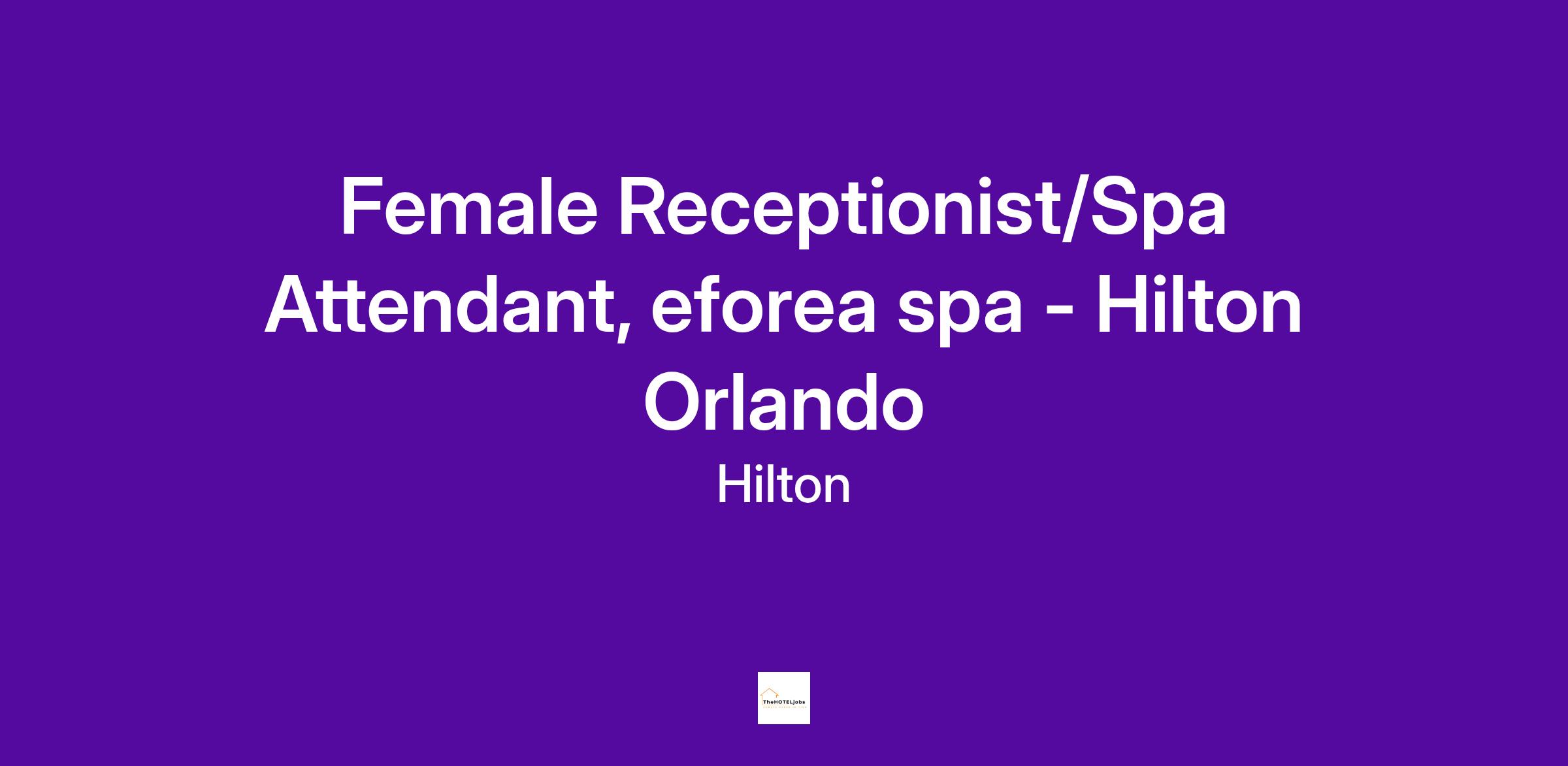 Hilton Orlando is looking to welcome a Full -Time Female Receptionist/Spa Attendant to join the team!