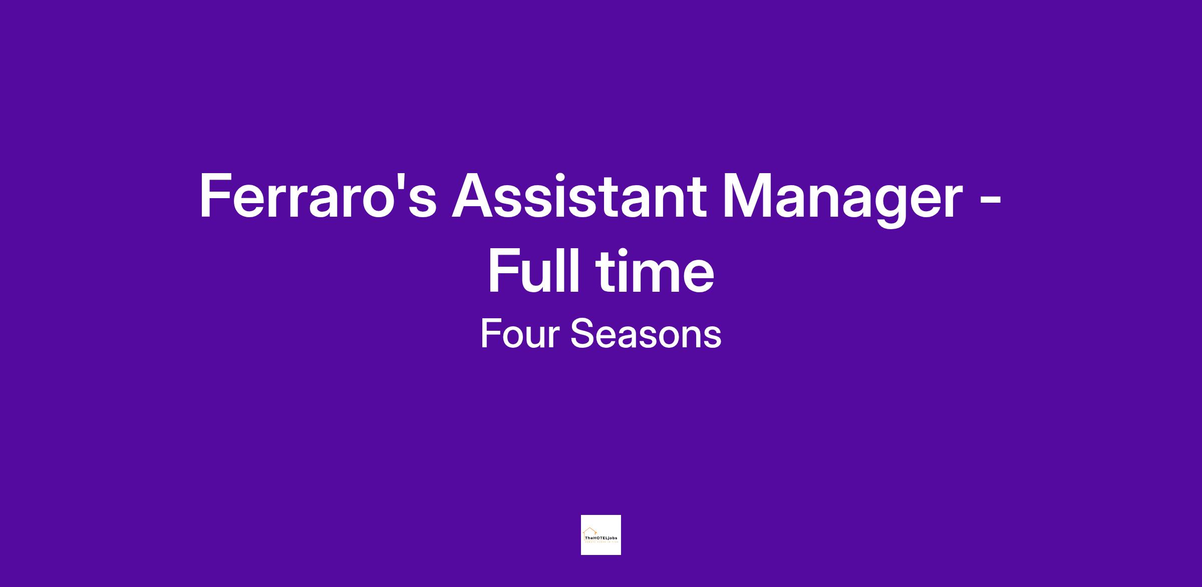 We are looking for a passionate Ferraro’s Assistant Manager who strives for excellence in a fast-paced work environment. This position reports to our Ferraro’s Assistant General Manager and General Manager.