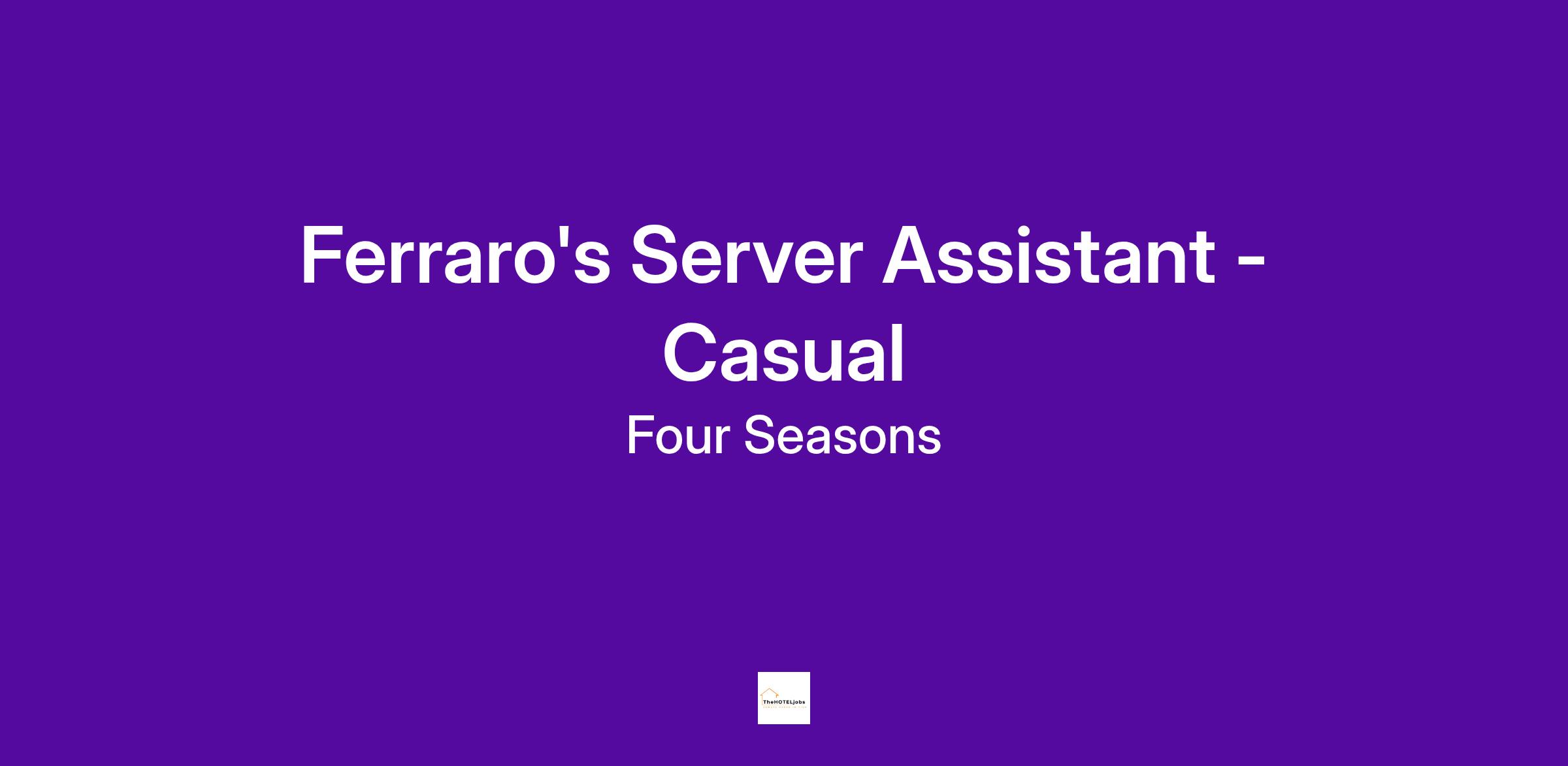 We are looking for a passionate Server Assistant who strives for excellence in a fast-paced work environment. This position reports to our Ferraro’s Management Team.