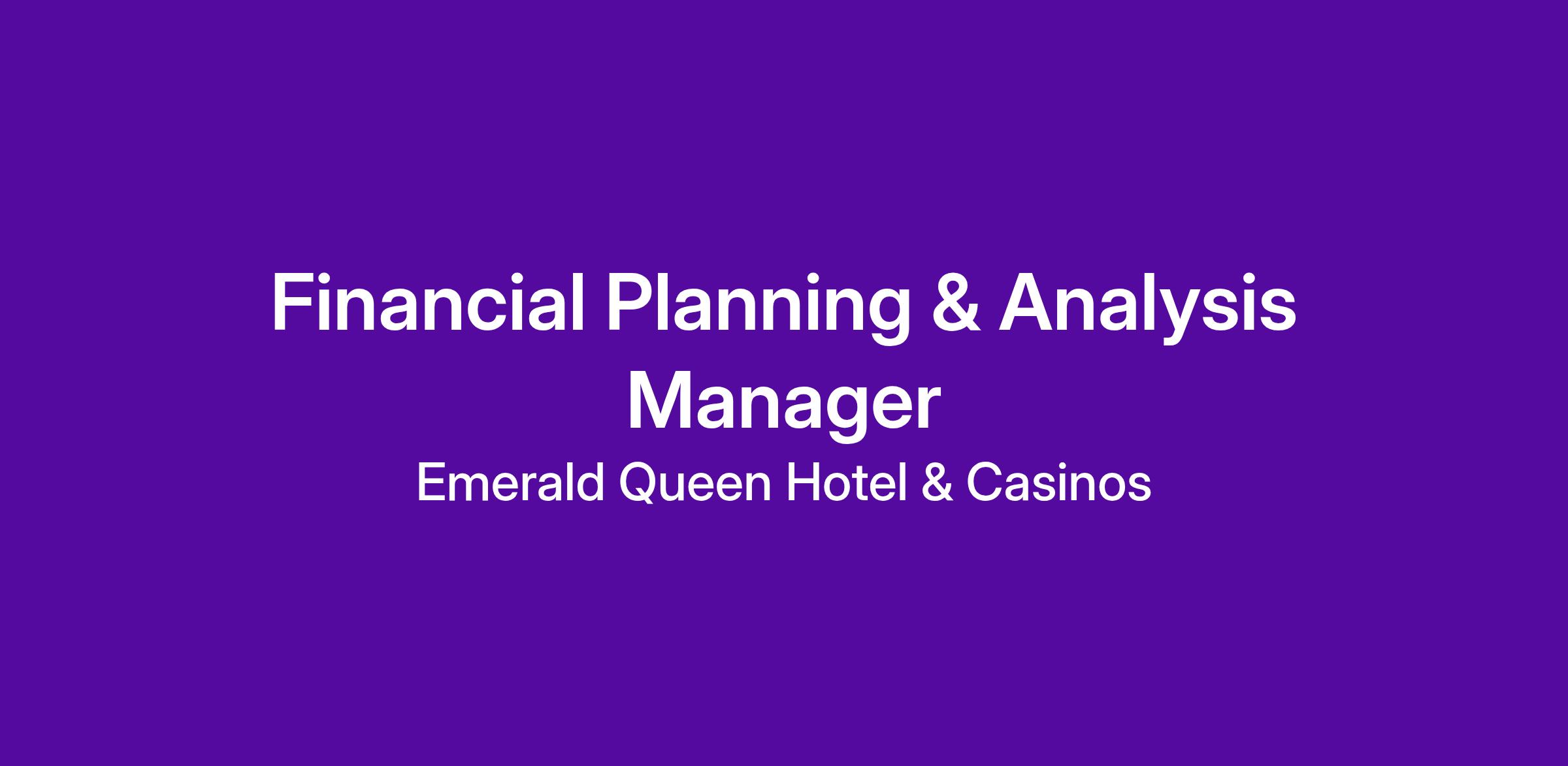 The Financial Planning and Analysis Manager plays a critical role in guiding casino leadership through data-driven financial planning and strategic decision making in a dynamic, 24/7 operating environment. This role leads the annual budget and forecasting process while building and maintaining robust financial models tied directly to key operational drivers. Working closely with department heads and executive leadership, the manager translates complex financial and operational data into clear, actionable insights that drive profitability and efficiency. The position also oversees variance analysis, credit agreement compliance, and continuous improvement of financial systems, tools, and processes. As a people leader, this role develops a high-performing financial analysis team while upholding strong governance, accuracy, and confidentiality standards.