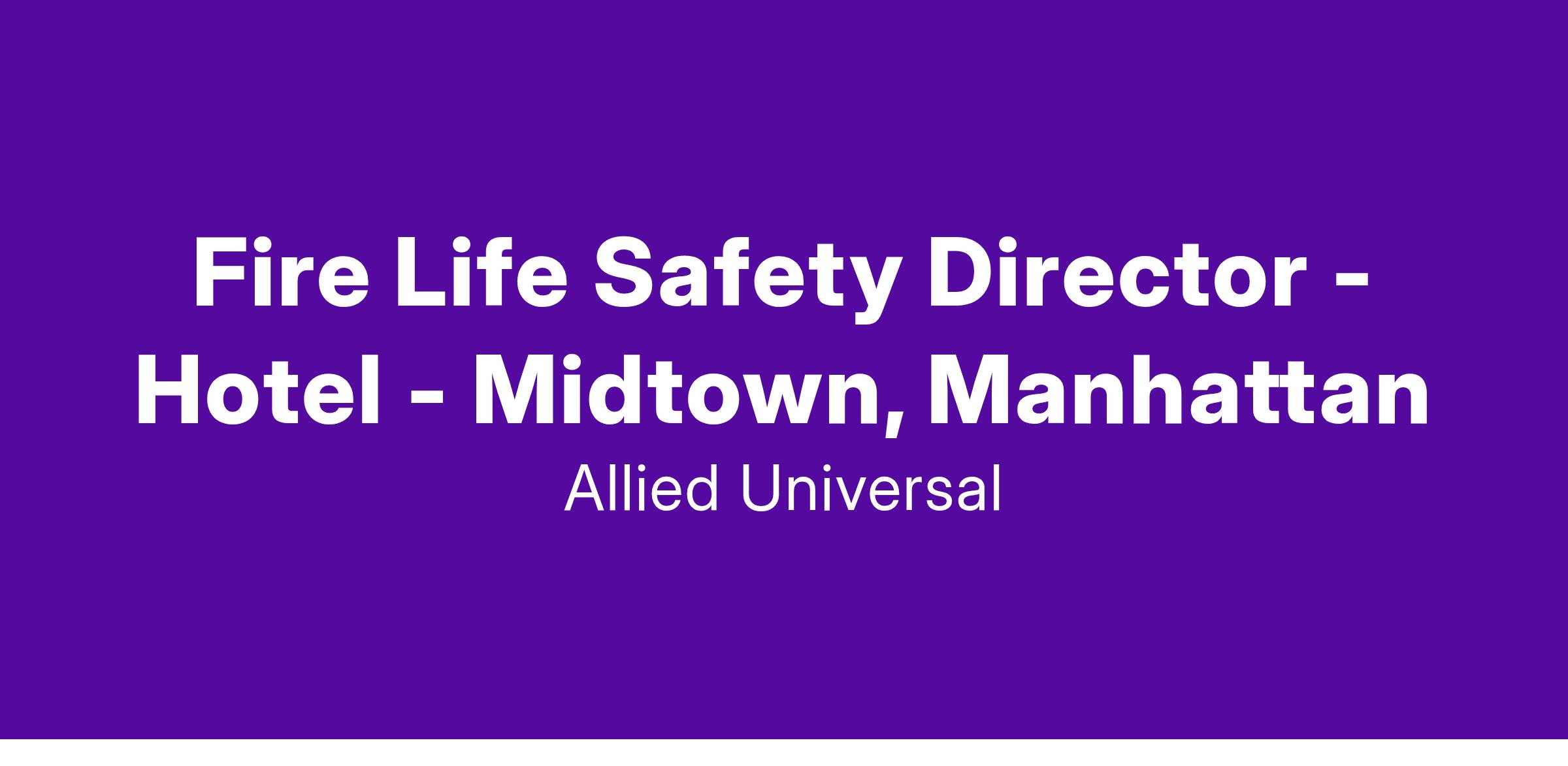 Allied Universal is hiring a Fire Life Safety Director to oversee a Hotel located in the Midtown Area of Manhattan