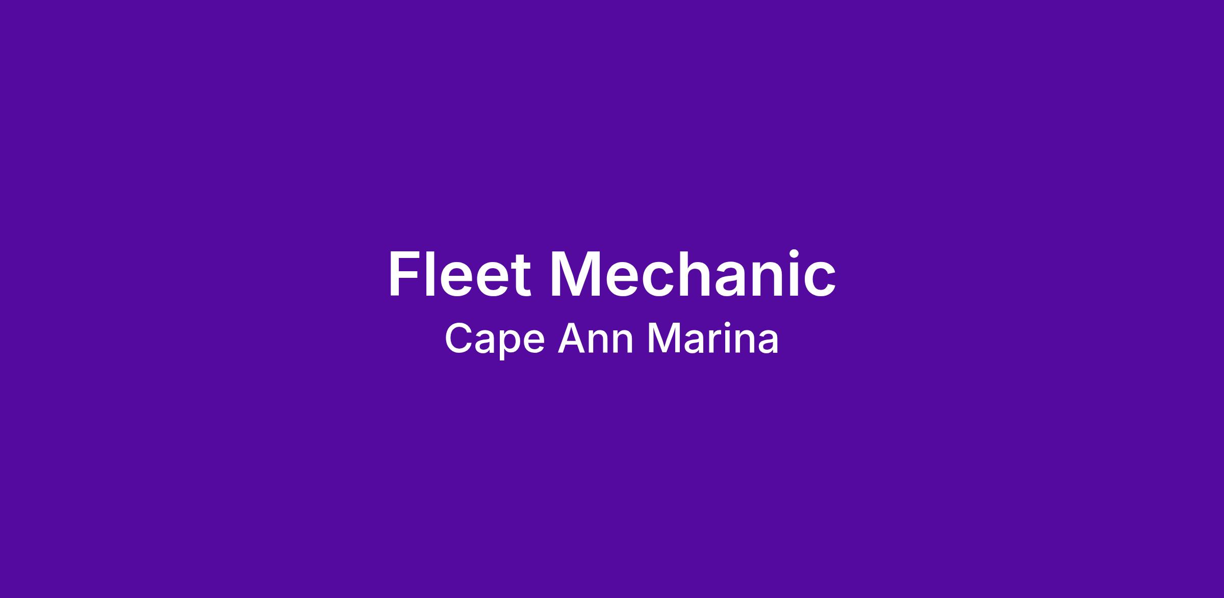 Cape Ann Marina is seeking a skilled and dedicated Fleet Mechanic at a busy year-round boat yard marina facility. The focus is keeping all major equipment fully operational, maintained and ready to go. Duties include performing preventative maintenance, diagnosing mechanical and electrical problems, and repairing or replacing parts. Equipment includes but not limited to diesel engines, forklifts, marine travel lifts, man lifts, hydraulics, winches, pumps and more. The mechanic will be responsible for diagnosing, ordering parts along side our parts department, and fixing the equipment. Staff golf carts and vehicles and some small engine repairs are also part of our fleet needs. The work schedule is Monday – Friday 8am-4pm.