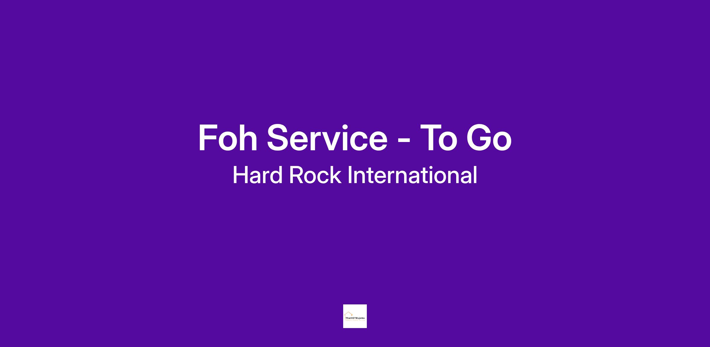 The To-Go Server is responsible for taking the guests through the key phase of their Hard Rock experience. As a Hard Rock Cafe Server, you will be assuming the role of tour guide, communicator, decision-maker, entertainer, memorabilia curator and musician (at heart).