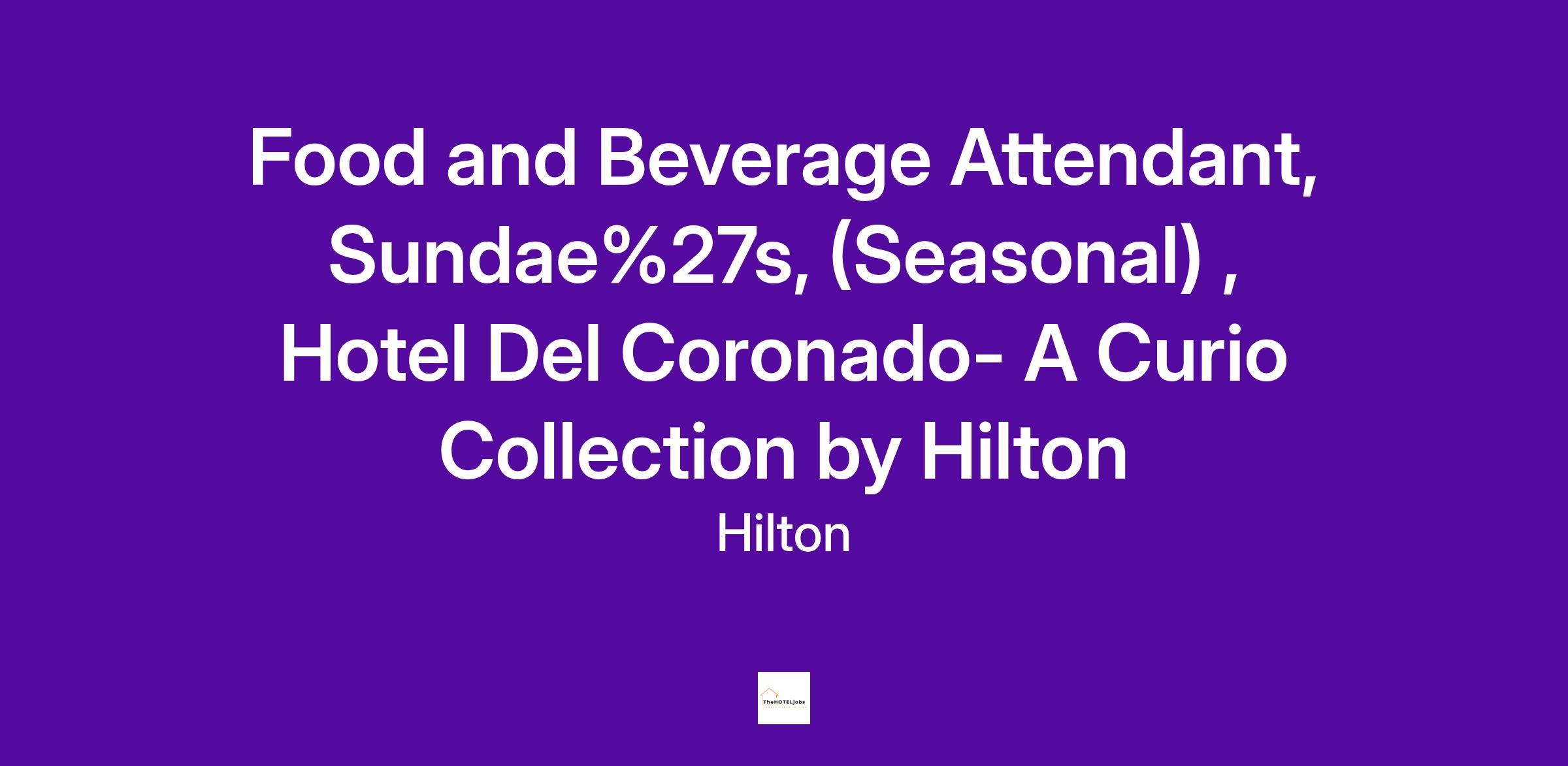 The iconic Hotel del Coronado is looking for a Sundae's Attendant to join the Food & Beverage team! Join one of the last surviving wooden Victorian beach resorts in the world and after a $400M renovation and expansion, the resort is more stunning than ever.