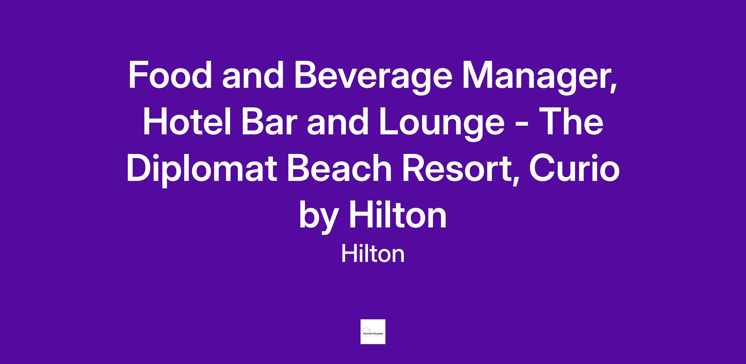 The Diplomat Beach Resort is seeking an experienced Manager to lead operations at the newly reimagined Hotel Bar. Following a property-wide renovation, as the property prepares to enter its next era as it transitions into Signia by Hilton. The Hotel Bar offers a vibrant yet cozy atmosphere, featuring classic cocktails, small bites with a Florida twist, and live music on weekends.