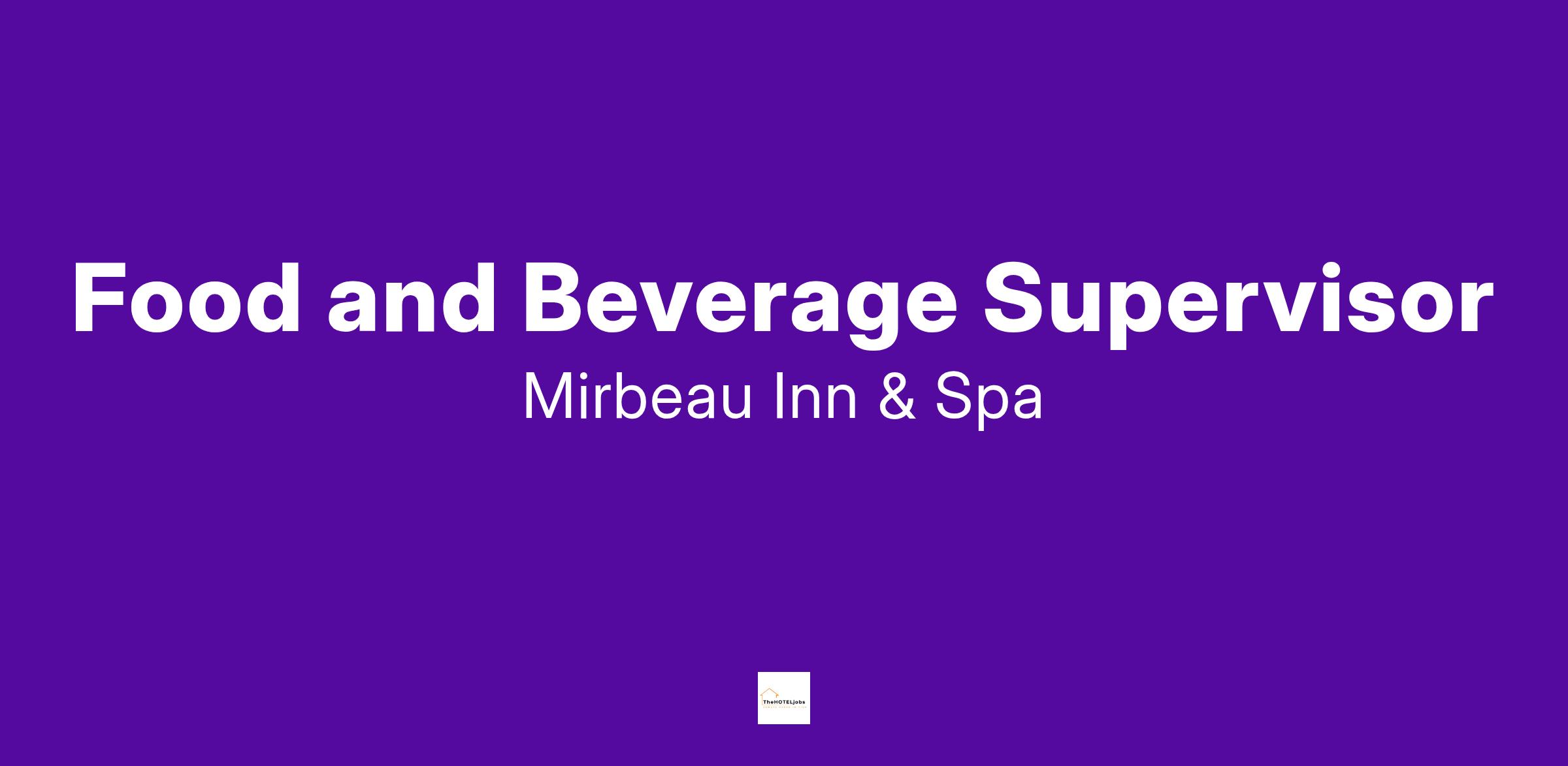 Food and Beverage Supervisor