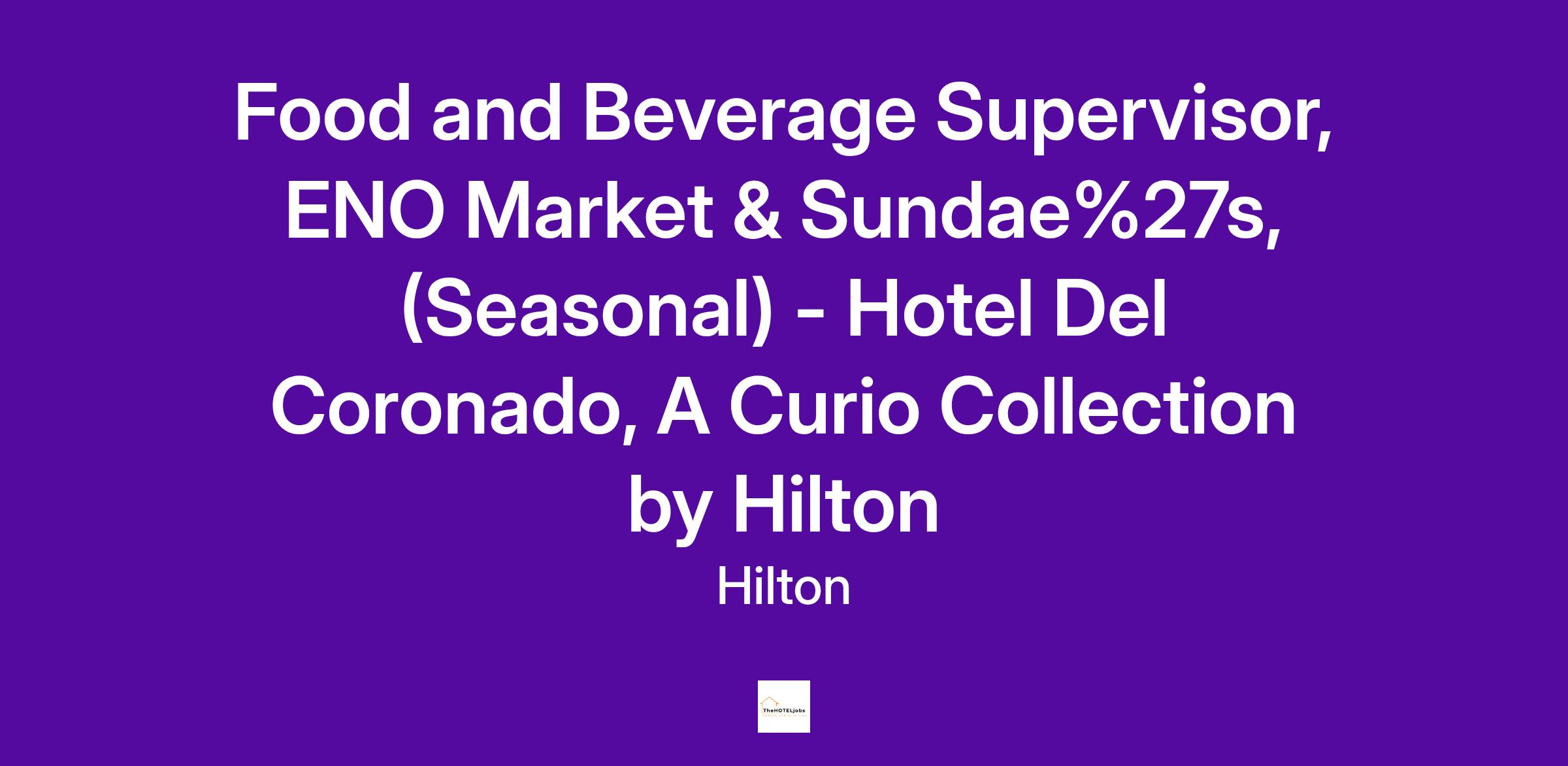 The iconic Hotel del Coronado is looking for a Food and Beverage Supervisor to join the Food & Beverage team at ENO Market & Sundae's! Join one of the last surviving wooden Victorian beach resorts in the world and after a $400M renovation and expansion, the resort is more stunning than ever.