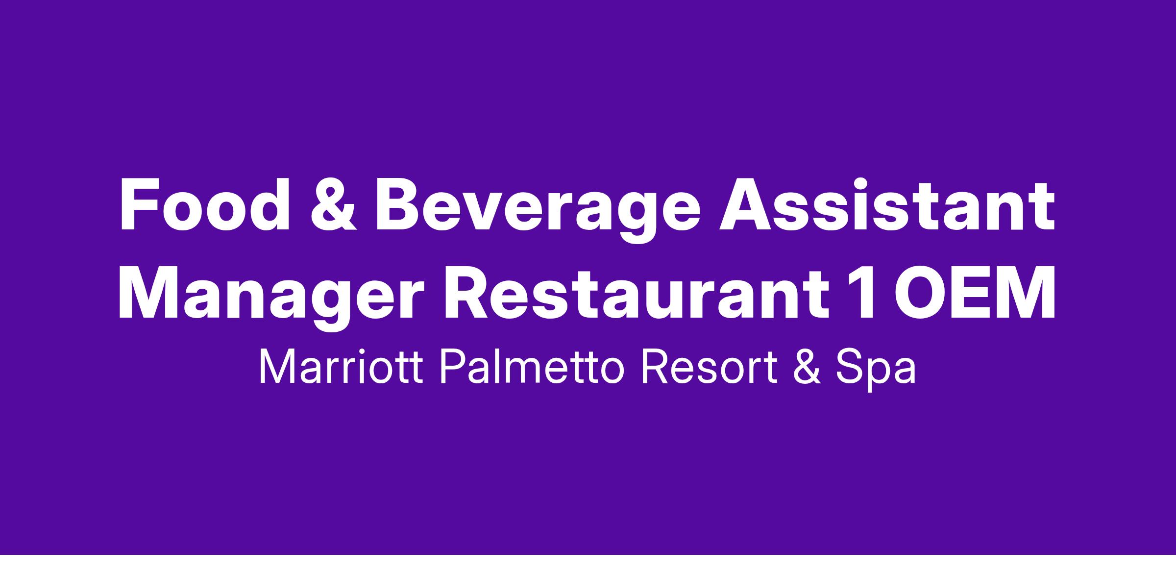 The Food & Beverage Asst Manager OEM assists with assuring attentive friendly courteous and efficient service in all F&B Outlets Room Service Lounge and Banquets while maintaining adherence to budgeted payroll and overhead cost. In partnership with F&B leadership the incumbent is also responsible for continually working towards improving Restaurant Room Service Lounge and Banquet sales revenues to exceed budget. Exempt associates are expected to work as much of each workday as is necessary to complete their job responsibilities. Management-level associates are expected to work as much of each workday as is necessary to complete their job responsibilities; for OEM associates overtime does apply and is calculated accordingly.
