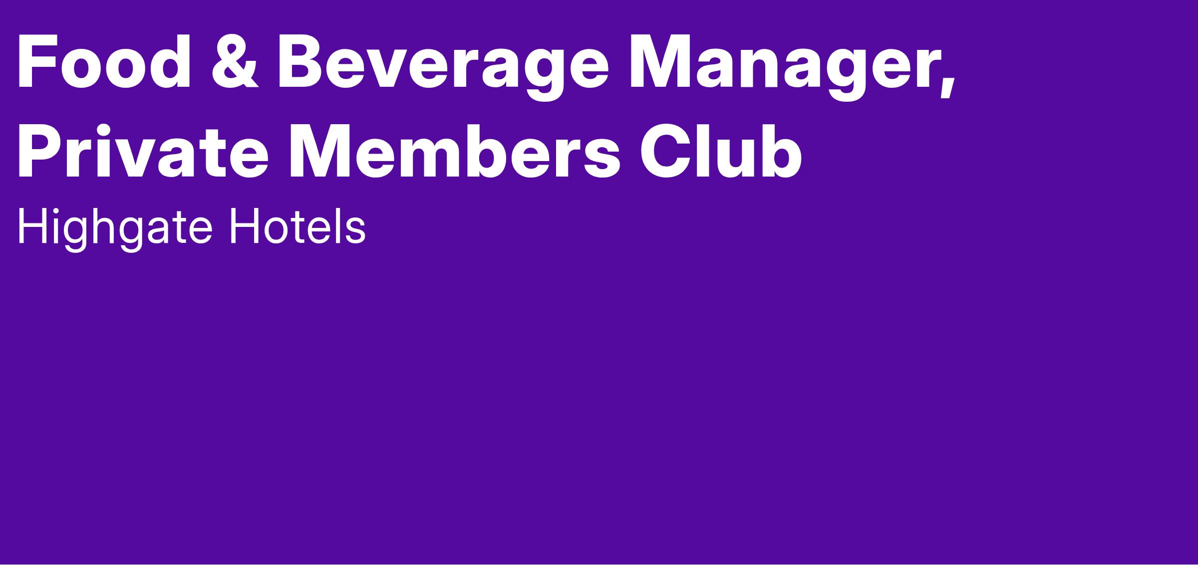 The Food and Beverage Manager, Private Members Club is responsible for coordinating, supervising and directing all aspects of food and beverage’s operations, while maintaining a profitable food and beverage outlet and high quality products and service levels. He/she is expected to market ideas to promote business; reduce employee turnover; maintain revenue and payroll budgets; and meet budgeted productivity while keeping quality consistently high.