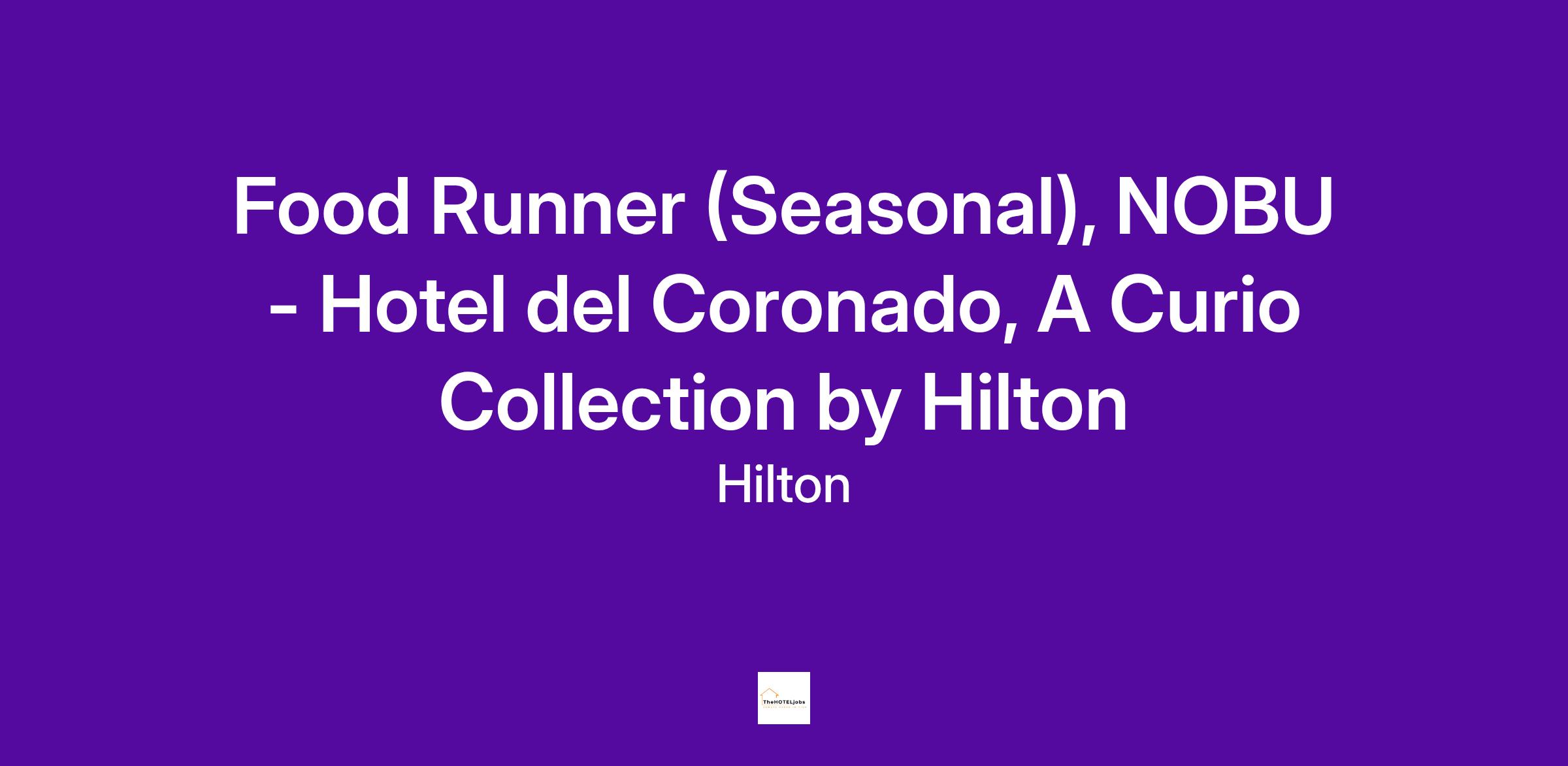 The iconic Hotel del Coronado is looking for a Food Runner to join their Nobu team! Join one of the last surviving wooden Victorian beach resorts in the world and after a $400M renovation and expansion, the resort is more stunning than ever.