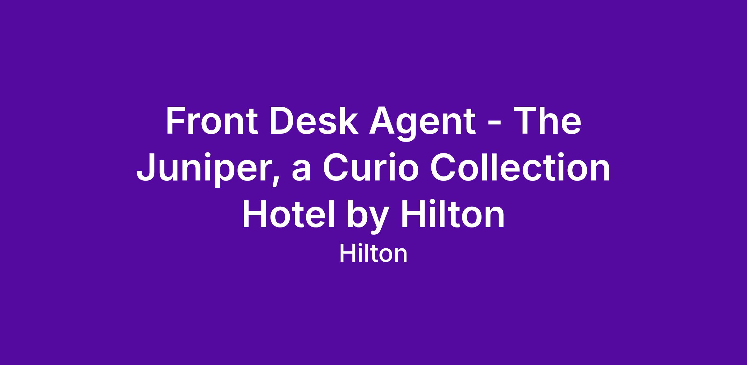 Juniper Hotel Cupertino, Curio Collection by Hilton is looking for their next Front Desk Agent to join our team! Our property has 224 guest rooms, about 11 miles west of downtown San Jose, and brings a modern boutique atmosphere to Silicon Valley. The hotel is less than 20 minutes from Levi's Stadium and San Jose Airport.