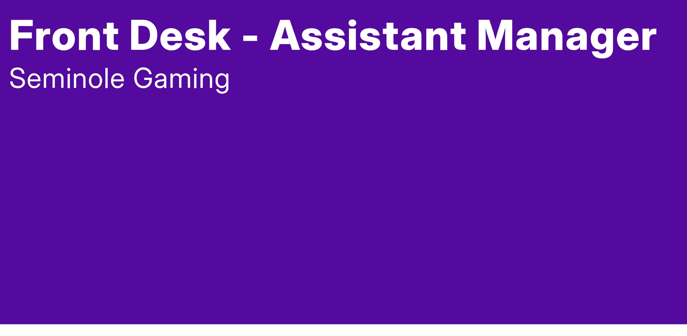 As part of Seminole Gaming’s employment process, final candidates will be required to obtain gaming licensure by completing a background check with Seminole Gaming Compliance and Regulations, prior to an offer being extended. These background checks may include, but are not limited to:
