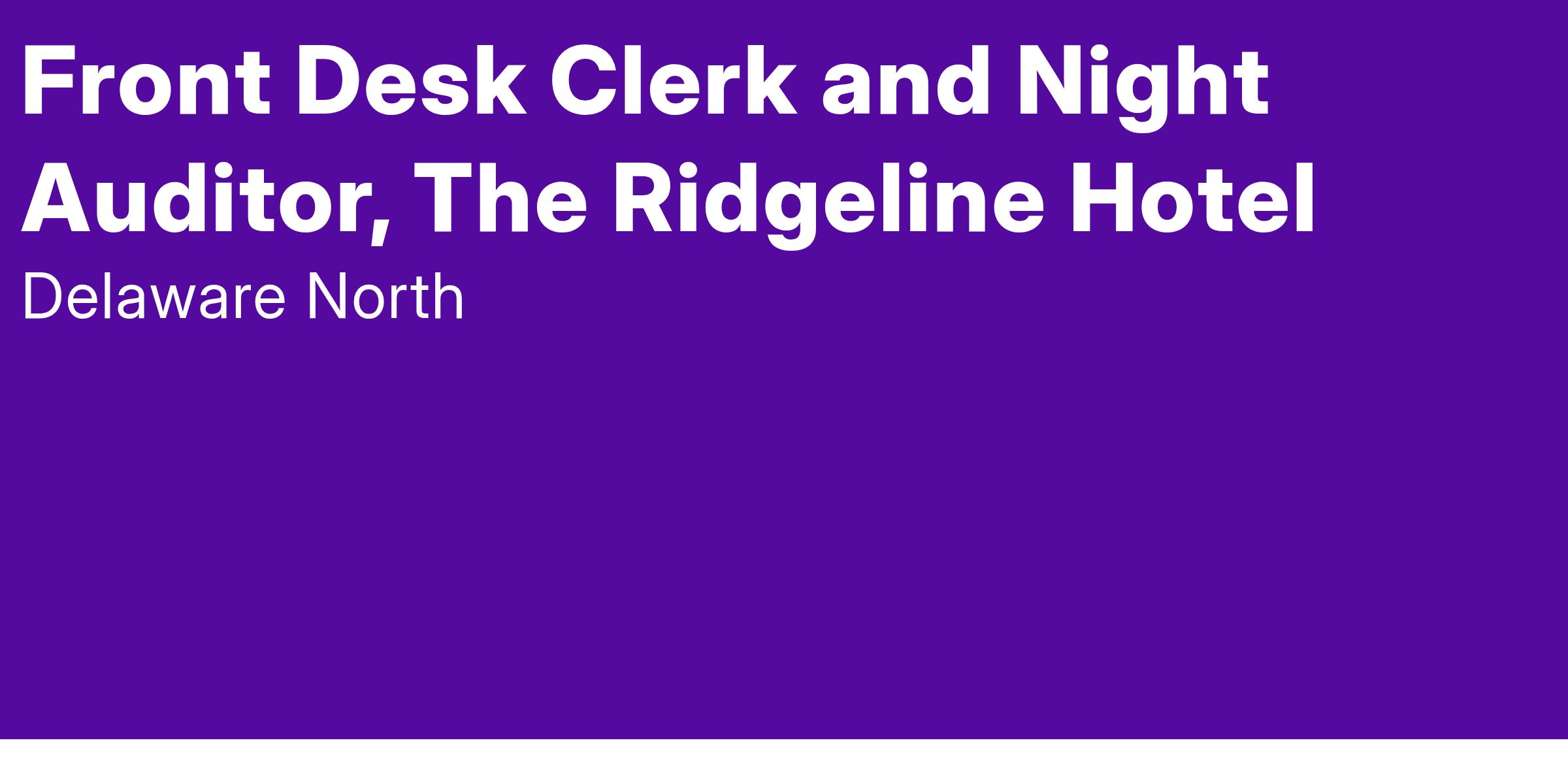 Delaware North Parks and Resorts is searching for a customer-service focused full-time Front Desk Clerk and Night Auditors to join our team at The Ridgeline Hotel in Gardiner, Montana. Working in an exciting, fast paced environment, you will never have a dull day at work. If you are interested in being responsible for night auditor and front desk duties, apply to join our collaborative team today.