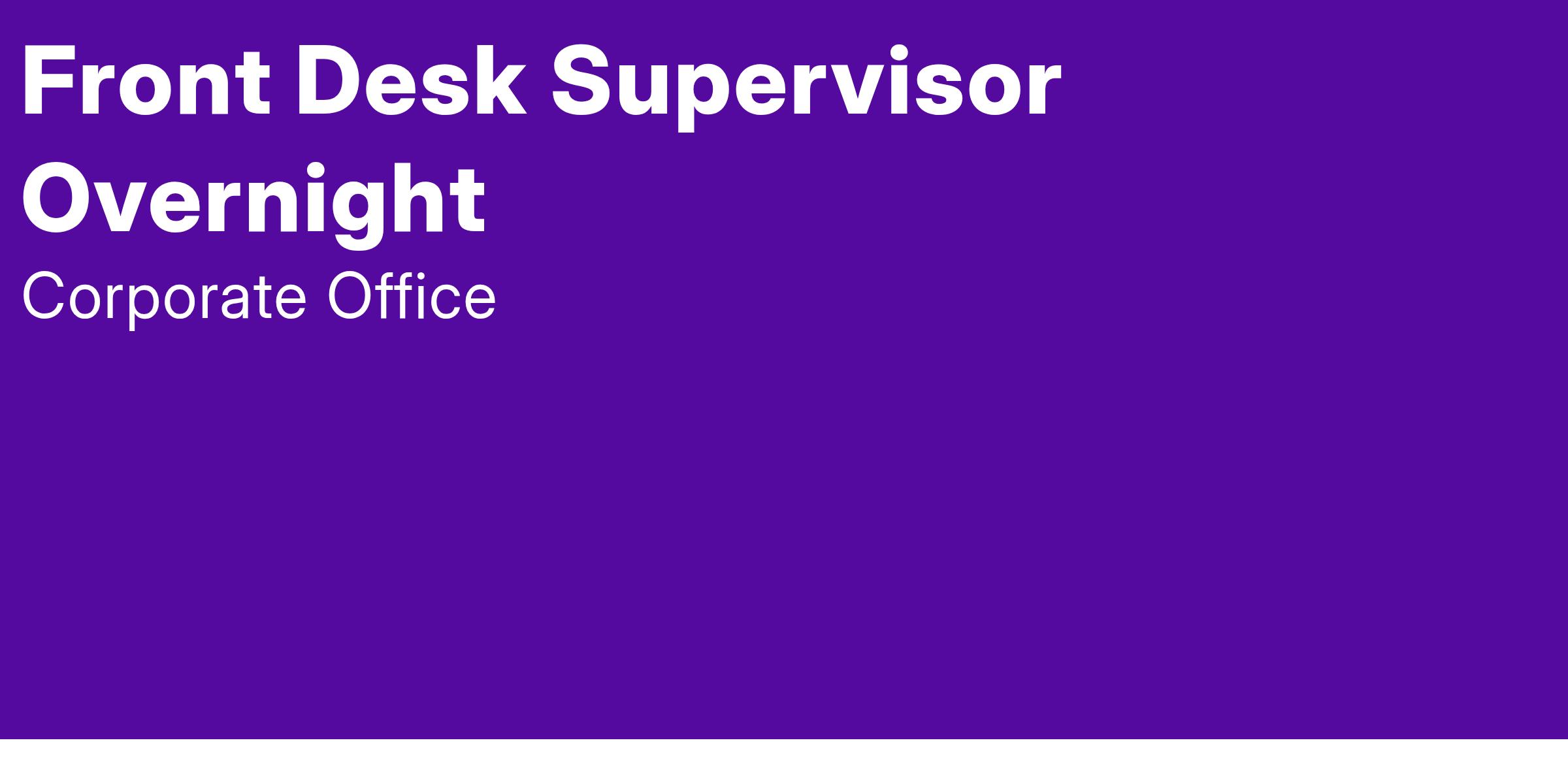 The role of the Overnight Front Office Supervisor is to ensure the appropriate checking in and checking out of guests in a courteous and professional manner while maintaining four star/four diamond standards. Additionally, he/she will be responsible handling guest issues and forwarding along as needed.