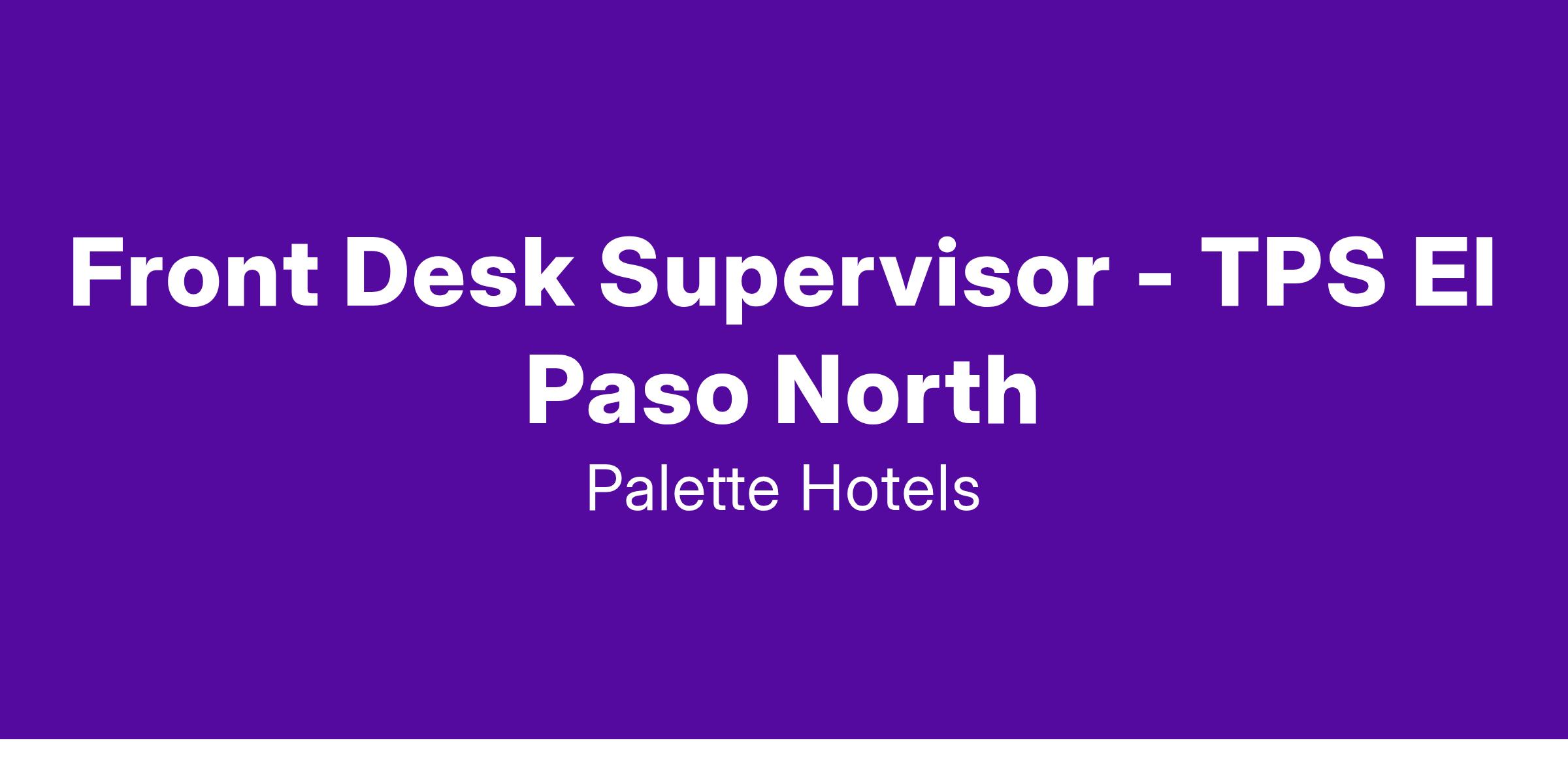 Front Desk Supervisor - TPS El Paso North