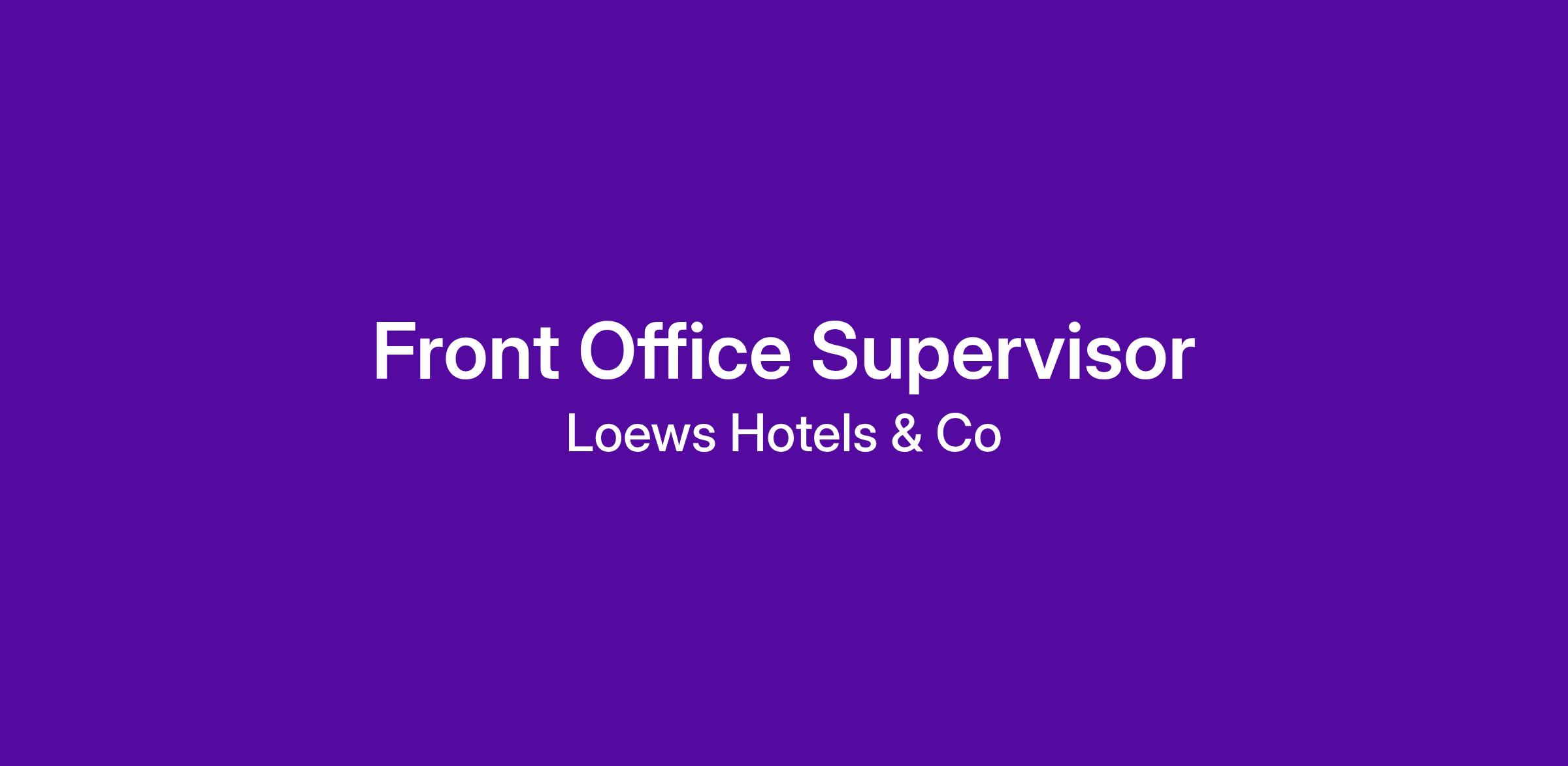 An experienced and dynamic Supervisor of Front Office, to lead the operational activities of our guest services team at Loews Hotels. This pivotal role is responsible for ensuring our team delivers exceptional service and quality, consistently exceeding guest expectations at the front desk and in concierge services.