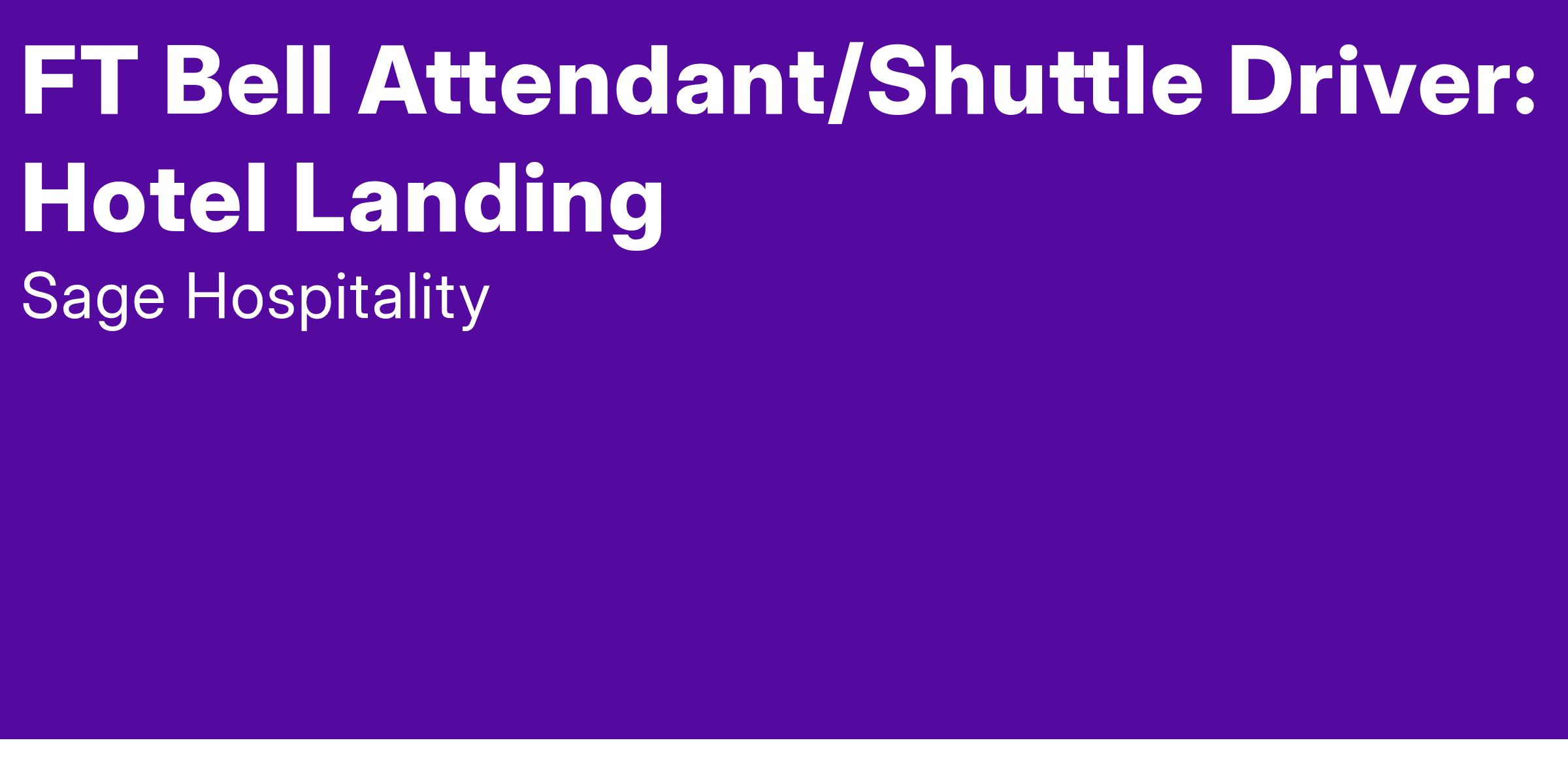 FT Bell Attendant/Shuttle Driver: Hotel Landing
