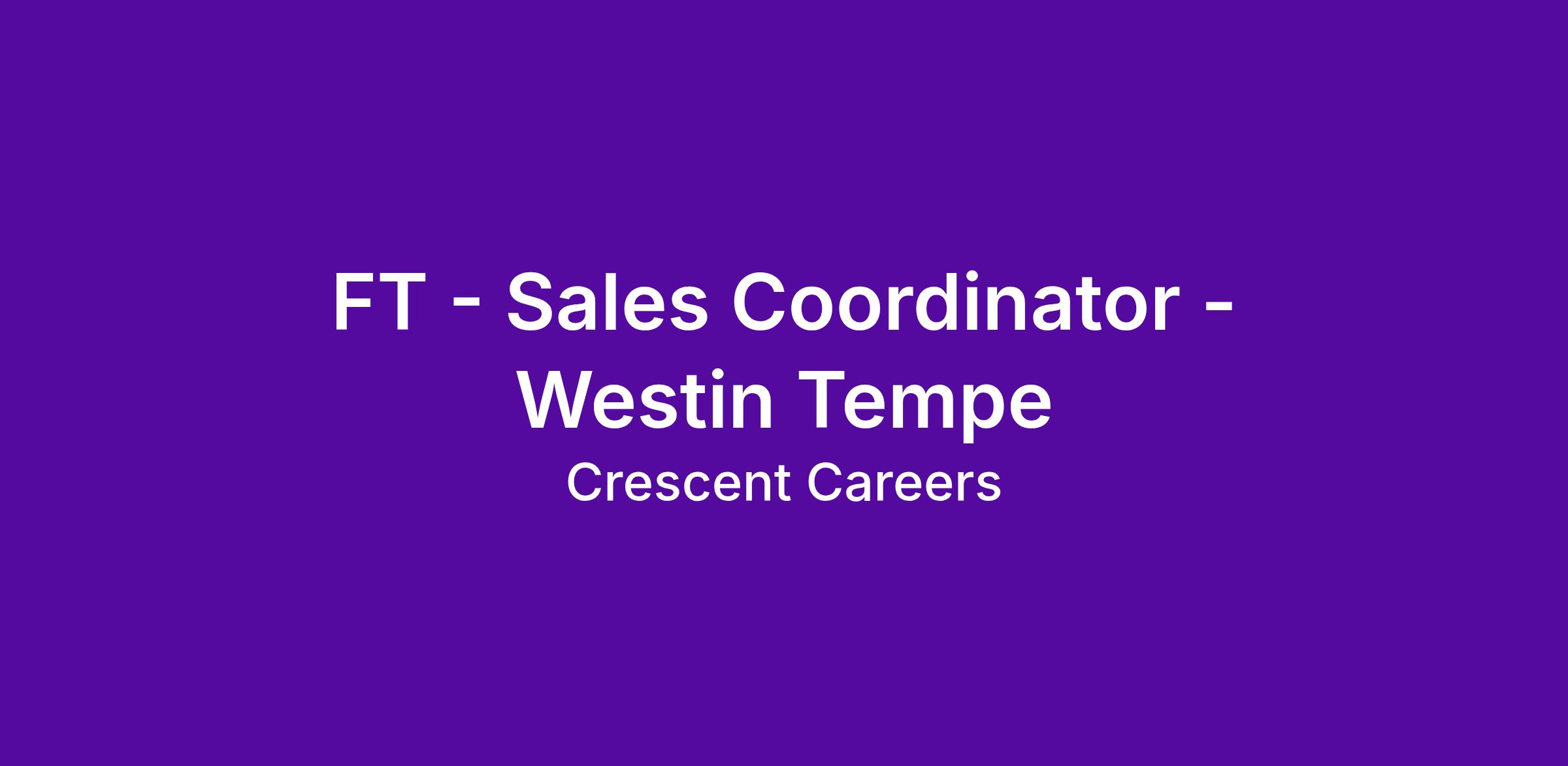 The Westin Tempe is looking for a FT - Sales Coordinator to join our amazing Sales Team!