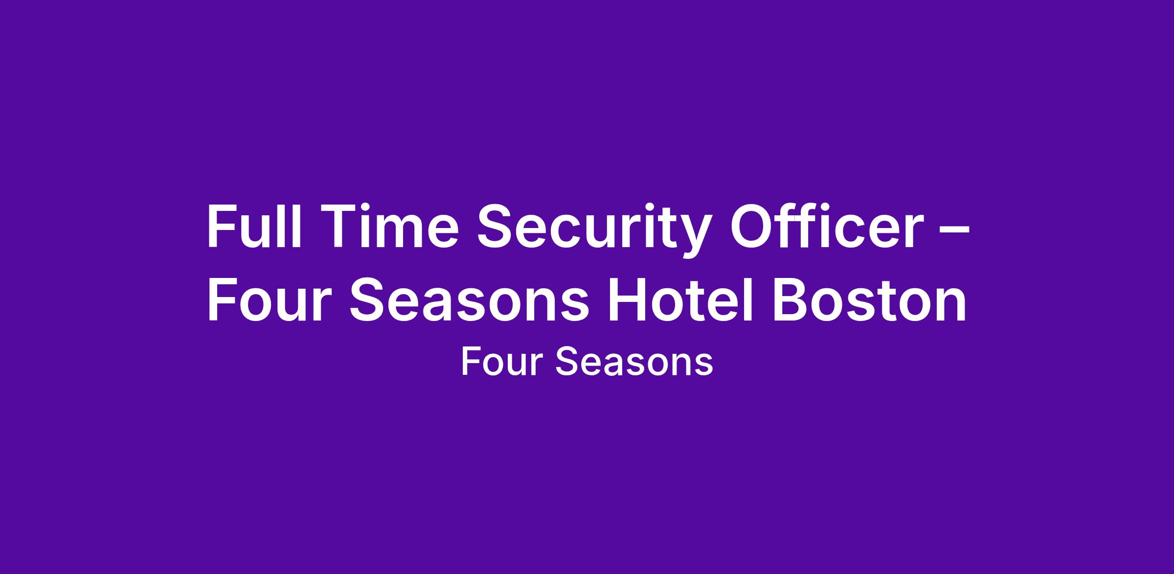 Four Seasons Boston is seeking a Security Officer who shares our passion for excellence and is enthusiastic about creating the ultimate service experience. The Security Officer will be a member of a small dynamic team delivering great service to our internal and external guests. We are looking for someone with excitement and dedication in promoting Security and Safety objectives outlined by the Director of Security and the Four Seasons Hotel Boston.