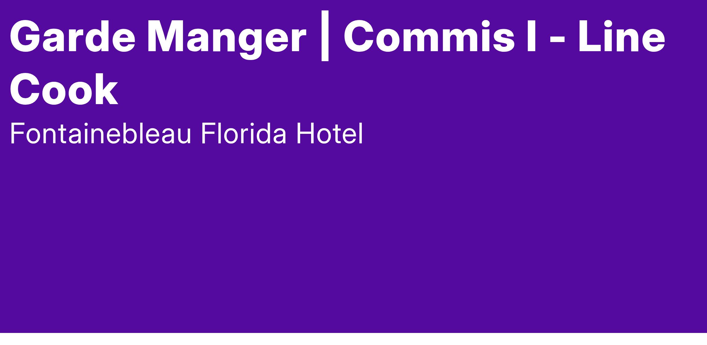 • High school education or equivalent. Culinary training or accredited apprenticeship program preferred.